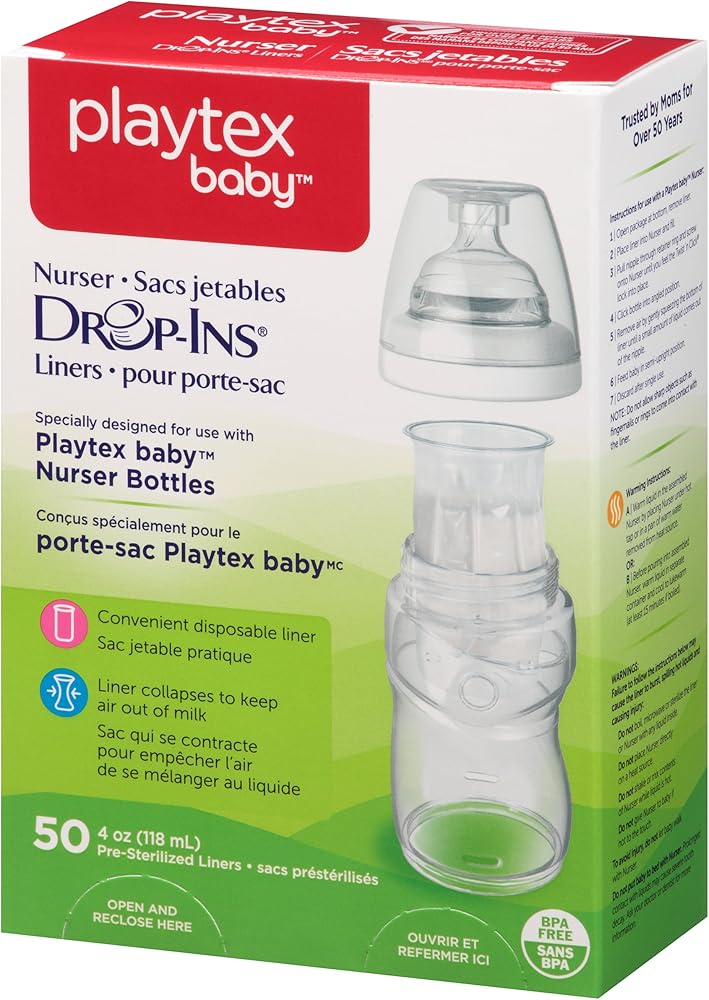 Playtex Drop Ins 50Ct Liner 4 Oz. More Natural Breathing - Clinically Proven - Pre-Sterilized Liner Gently Collapses Like Mom's Breast As Baby Feeds. Air-Free Feeding To Help Reduce Colic - Unique Anti-Colic Liner Gently Collapses As Baby Feeds, Preventing Air Bubbles From Mixing With Milk. Less Air Bubbles Means Less Gas, Colic And Discomfort. Mimics Natural Breastfeeding By Simulating Same Suck, Swallow And Breathe Patterns As Breastfeeding, So Baby Breathes More Naturally During Feeding.