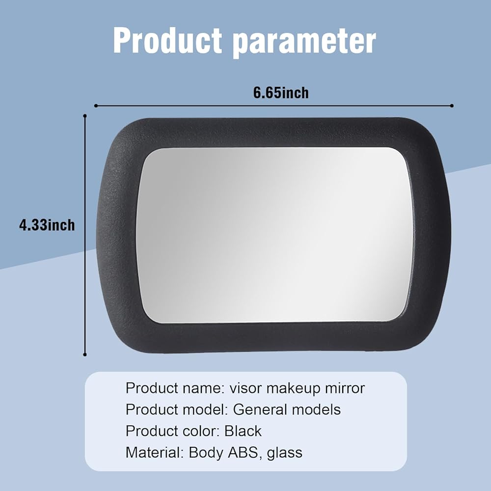 Product Details: This vanity mirror measures 6.6" x 4.3". Package includes 1 piece vanity mirror. The product is lightweight and easy to carry without affecting the use of the sun visor. This vanity mirror is the perfect gift for women who love cars and cosmetics.