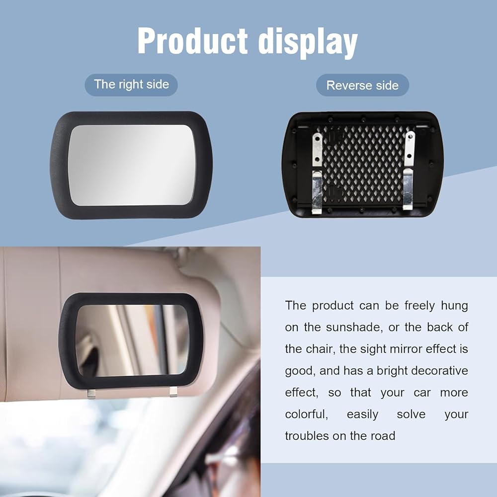 Application: This product is suitable for most cars. It can be hung on the sun visor or the back of the seat. It has a good mirror effect and a bright decorative effect, making your car more elegant. Easily solve your worries while driving. Provide you with more considerate designs and services to make your driving journey feel more like home.