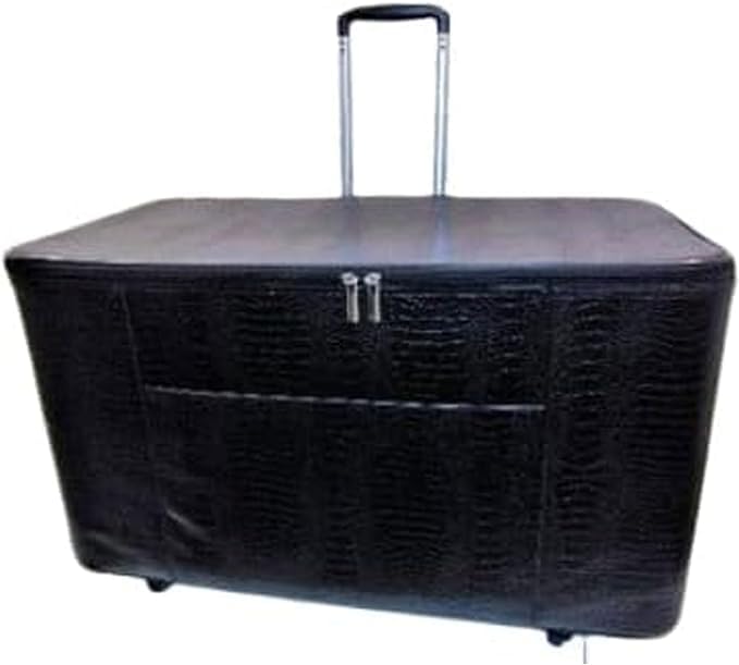 The interior is plush lined and padded to safeguard against damage. Velcro straps are used to hold machines securely in place. Features a multi-stage retractable ergonomic handle. 360 degree swivel caster provides enhanced stability and ease of motion in any direction.