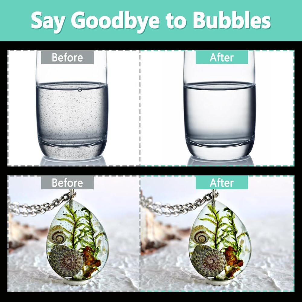 • مزيل فقاعات الراتنج مع وظائف مطورة: لقد أضاف صوتًا لإنجاز العمل، وصفيرًا للعطل، ومؤقتًا مدته 10 دقائق للإغلاق التلقائي، ووظيفة إيقاف وسيطة، مما يؤدي إلى إبطاء عملية معالجة راتنجات الإيبوكسي بشكل فعال. يوصى عند الانتهاء باستخدام مسدس حراري لإزالة العدد الصغير من فقاعات الهواء الصغيرة في الأعلى.