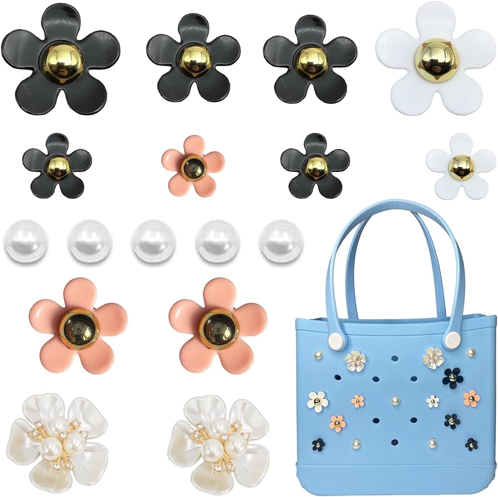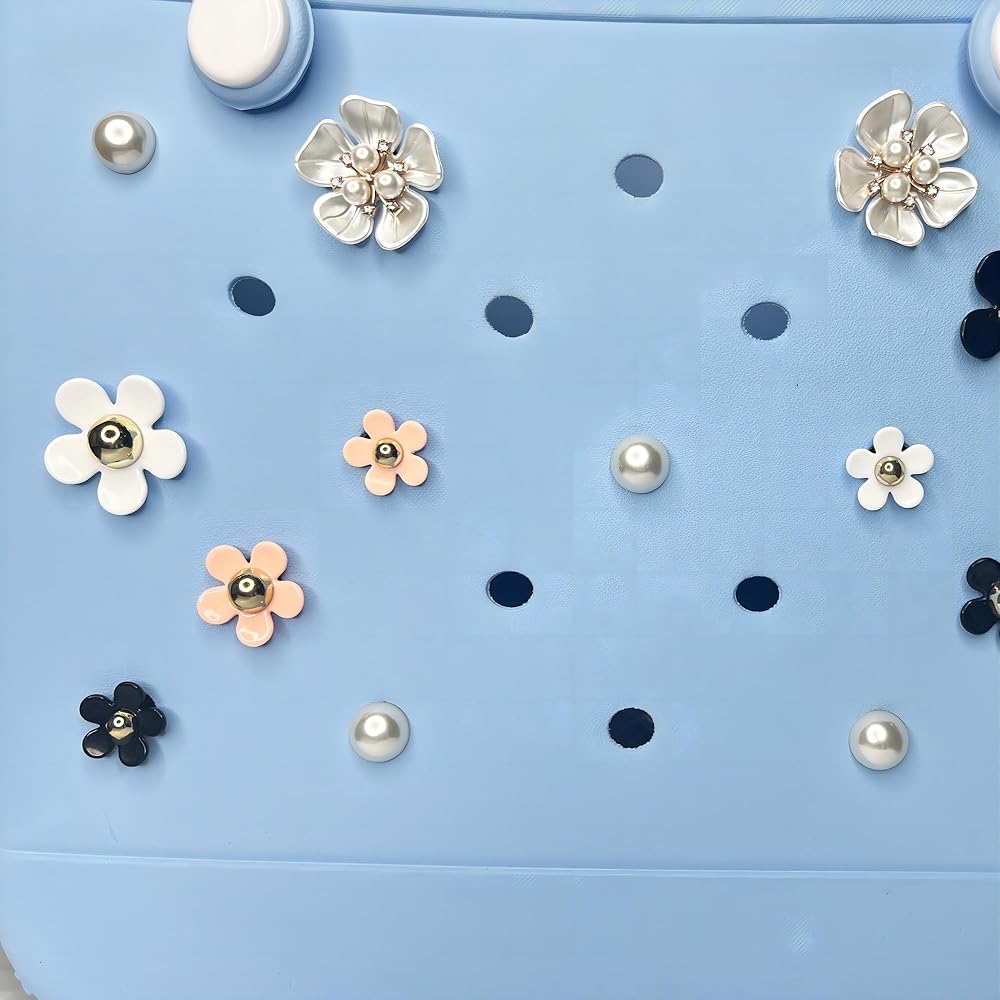 Add a touch of whimsy and personality to your Bogg Bag or tote with this delightful set of 17 flower and pearl Accessories ! ✨