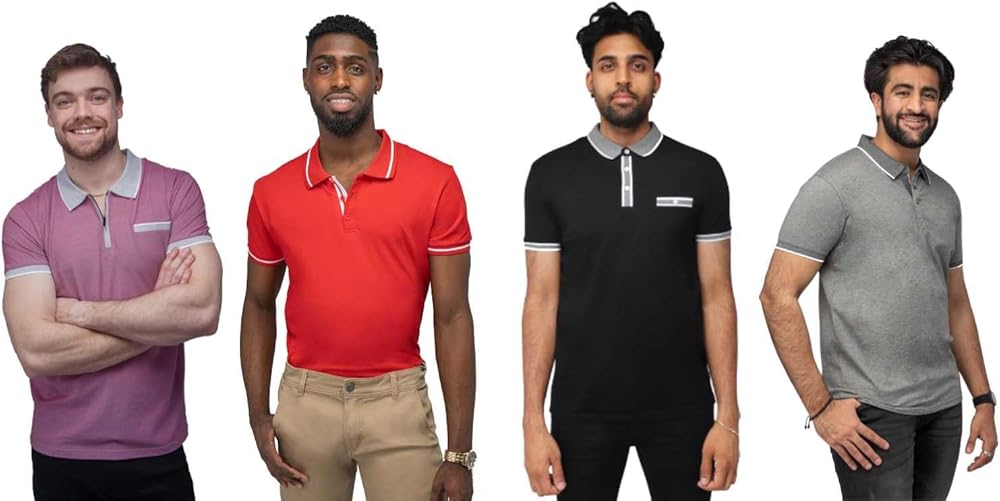 أناقة الياقة المضلعة: ارفع أناقتك مع تفاصيل الياقة المضلعة، مما يضيف لمسة من الرقي إلى قمصان البولو الكلاسيكية للرجال. سواء كنت ترتدي ملابس يوم عمل كاجوال أو تذهب إلى ملعب الجولف، فإن الطوق المضلع يعزز الجمال العام، ويجمع بين الأناقة والعملية.