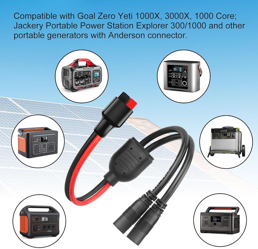 تطبيق واسع: موصل أنثى DC8mm وكابل مجمع موصل Anderson متوافق مع قابس Goal Zero، مناسب لمحطة طاقة مولد الطاقة الشمسية GZYeti/ExpertPower/MAXOAK/BLUETTI/Jackery. (لا ينطبق على محطة الطاقة المحمولة Jackery Explorer Series 1500/2000 Pro)