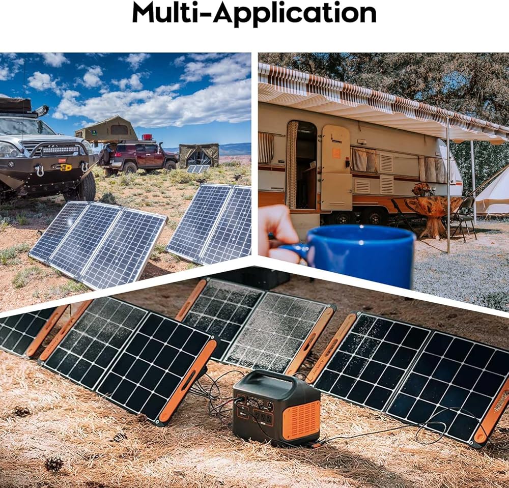 محول اللوحة الشمسية: يمكنك استخدام اللوحة الشمسية *2 قطعة لشحن محطة الطاقة المحمولة الخاصة بك، مما يقلل وقت الشحن. يسمح لك بالحفاظ على محطة الطاقة الخاصة بك في مكان أكثر أمانًا عند توصيلها باللوحة الشمسية.