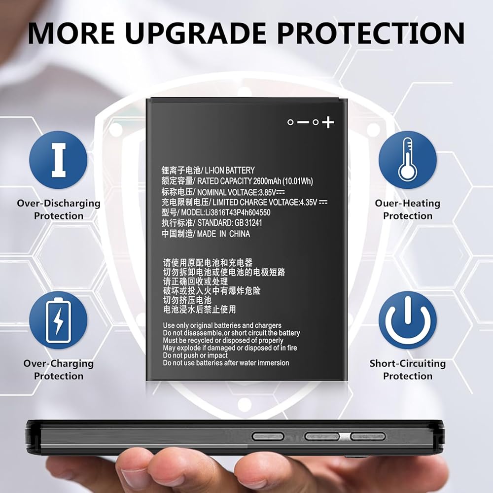 【62% Higher Capacity than Original Battery】li3822t43p4h736040 battery replacement 2600mAh high capacity 62% Higher Capacity than Original Battery, Brand New 0 Cycle battery cell capacity is upgraded to store more power, bring more standby time, increasing battery life and and reduce your recharging times.
