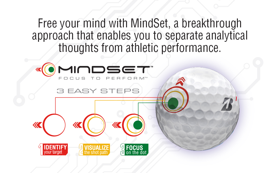 • MindSet عبارة عن إشارة مرئية على كرة الجولف تذكرك بالعملية السهلة المكونة من ثلاث خطوات
