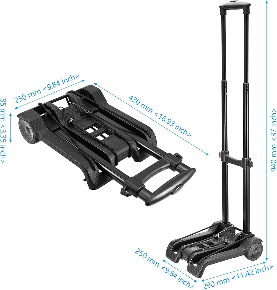 This luggage cart with 2 wheels is compact in size, you can fold or unfold it in few seconds, then take it anywhere or store it in your car.