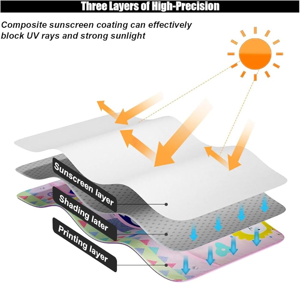 • 【UV Protection】:This car sunshade is made of 3-layer composite fabric, which can block 99% of sun glare and UV rays, protect your children from harmful UV rays, and keep the temperature inside the car cool and comfortable.
