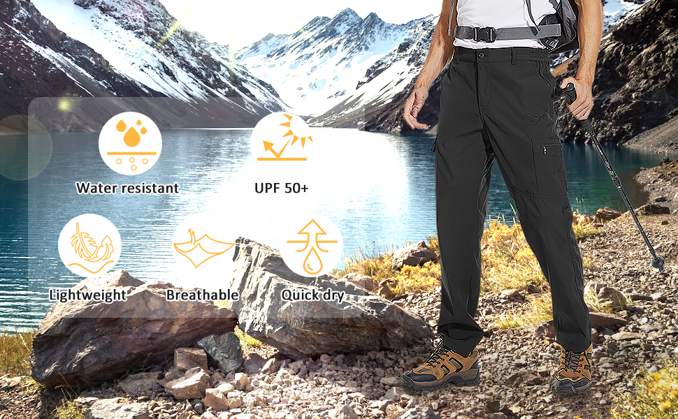نسيج متين ومقاوم للبقع: سراويل المشي لمسافات طويلة هذه مصنوعة من نسيج متين يتحمل التآكل، مما يجعلها مثالية للاستخدام القاسي في الهواء الطلق. كما أن القماش مقاوم للبقع، مما يضمن بقاء بنطالك نظيفًا ومنتعشًا حتى في البيئات الصعبة. إنها مثالية لمجموعة متنوعة من الأنشطة الترفيهية في الهواء الطلق، بما في ذلك المشي لمسافات طويلة والتسلق والسفر وصيد الأسماك والتخييم.