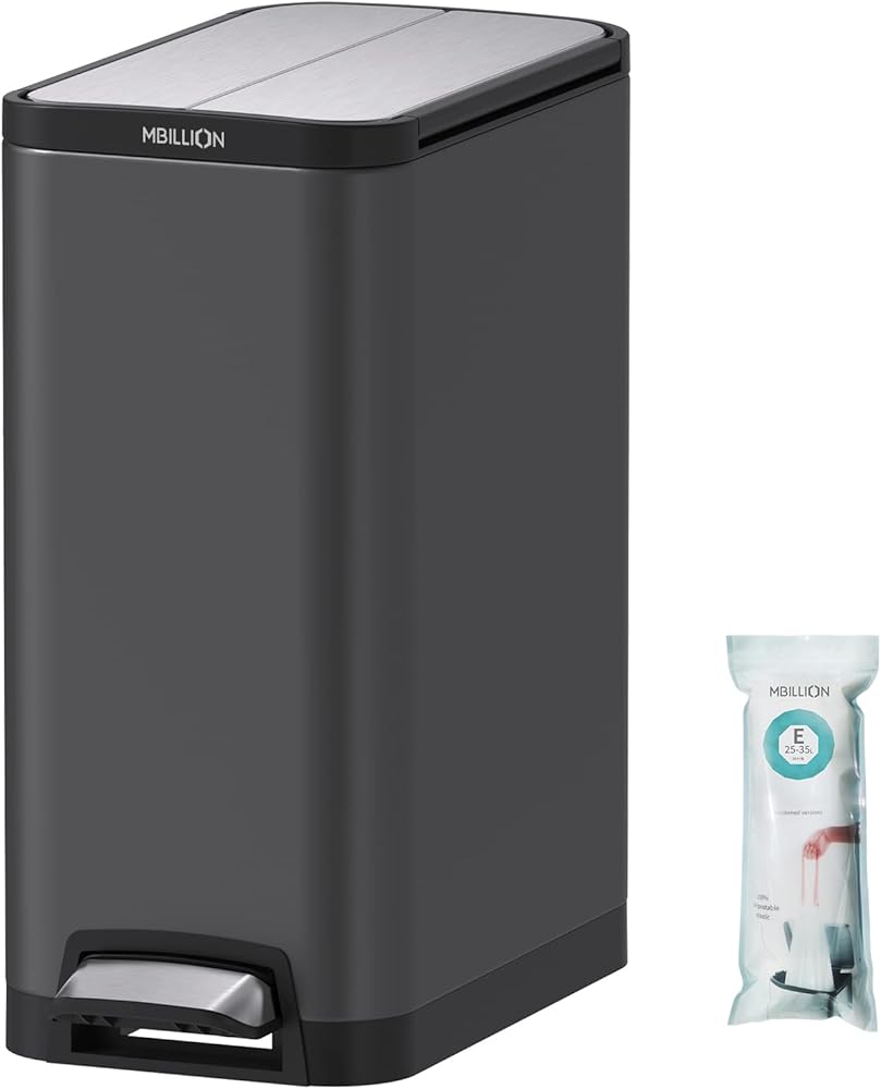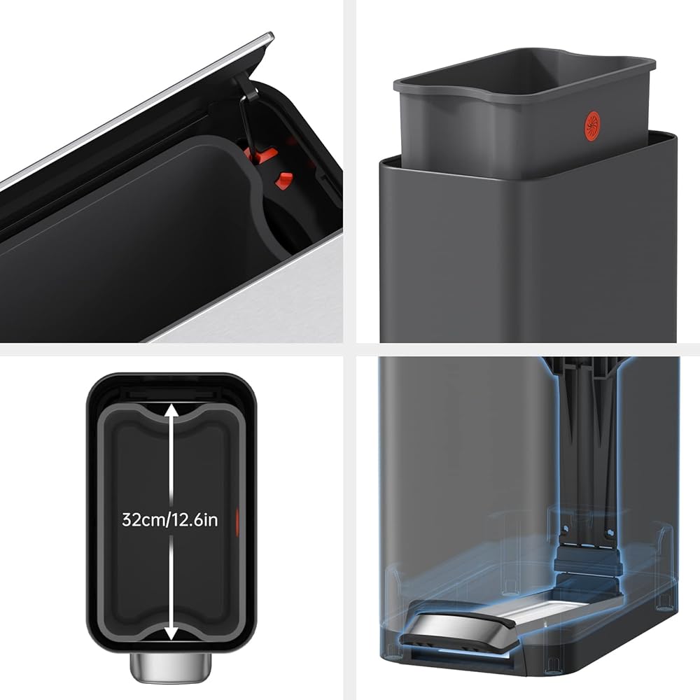 【تصميم مستطيل نحيف】سلة المهملات هذه ذات تصميم مستطيل ونحيف، يمكنك وضعها في بعض الفجوات الضيقة لتوفير المساحة، رائعة للمطبخ الصغير والمنزل.