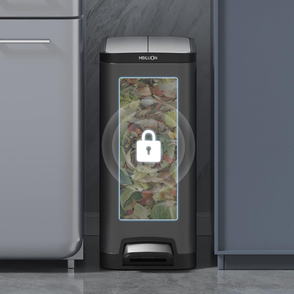 【إغلاق صامت】يمكن لسلة المهملات المغلقة الصامتة أن تحتوي على آليات إغلاق بطيئة وناعمة، وسوف تبطئ وتغلق عندما تترك قدمك الدواسة.