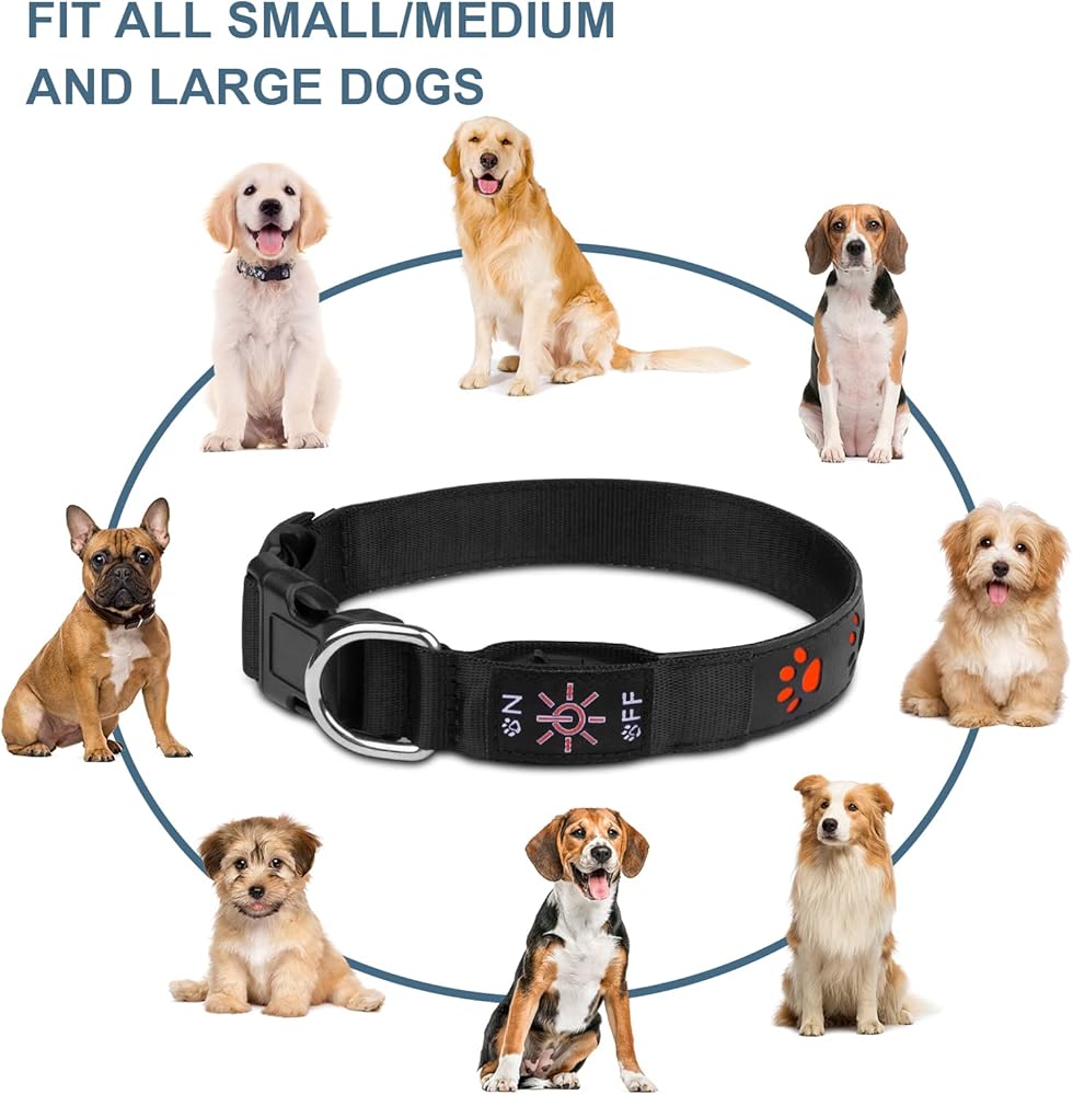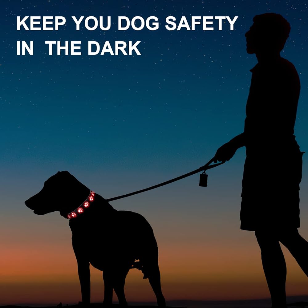 🐶مادة عالية الجودة - طوق الكلاب LED هذا مصنوع من نسيج مسطح عالي الجودة لإبقاء كلبك مرئيًا لمسافة 500 متر في ظروف خافتة أو بدون إضاءة، لذلك يبقى كلبك آمنًا ومرئيًا ويتجنب حوادث المرور.