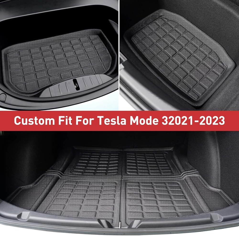 TAPTES لـ Tesla Model 3 Trunk Mat 2023 2022 2021، لـ Tesla Model 3 جميع الأحوال الجوية بطانة البضائع الأمامية والخلفية منظم تخزين صندوق السيارة الحصير الأرضية لـ Tesla Model 3 الملحقات 2021-2023 (مجموعة من 3)