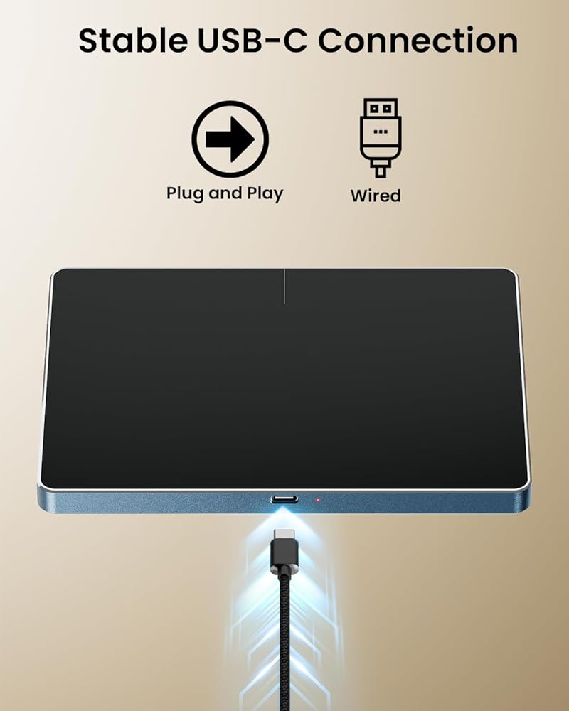 Plug-and-Play with Stable USB C Connection: Simply plug the USB cable into your computer's USB port, and the touchpad for Mac will work seamlessly without needing additional drivers. Reliable and stable connection via USB C cable ensures you won't face any connectivity issues during use.