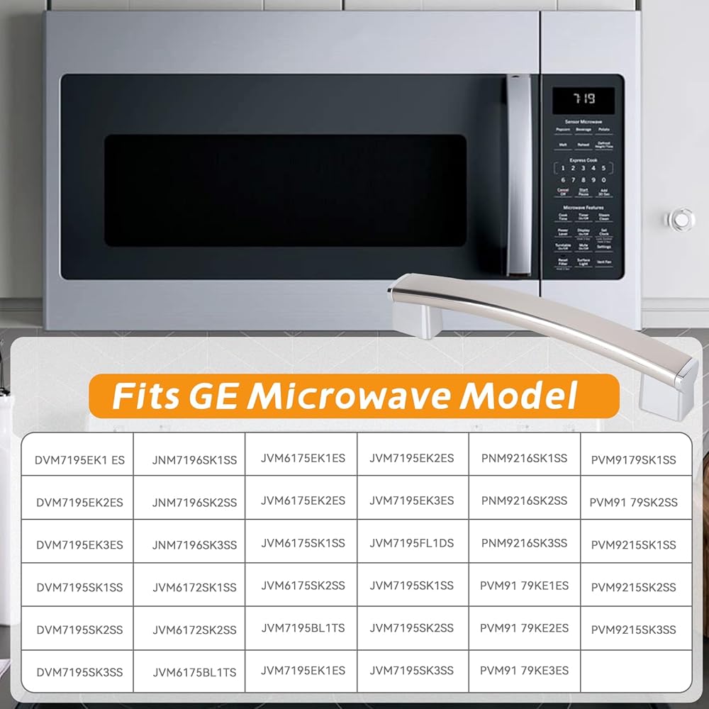 【استبدال مثالي】يتميز استبدال مقبض باب الميكروويف GE WB15X26821 عالي التحمل بمقاس دقيق يطابق مقبض باب الميكروويف OEM. تأتي مع براغي، سهلة التركيب، لا داعي للقلق بشأن أن المقبض سوف يتقشر أو ينكسر.