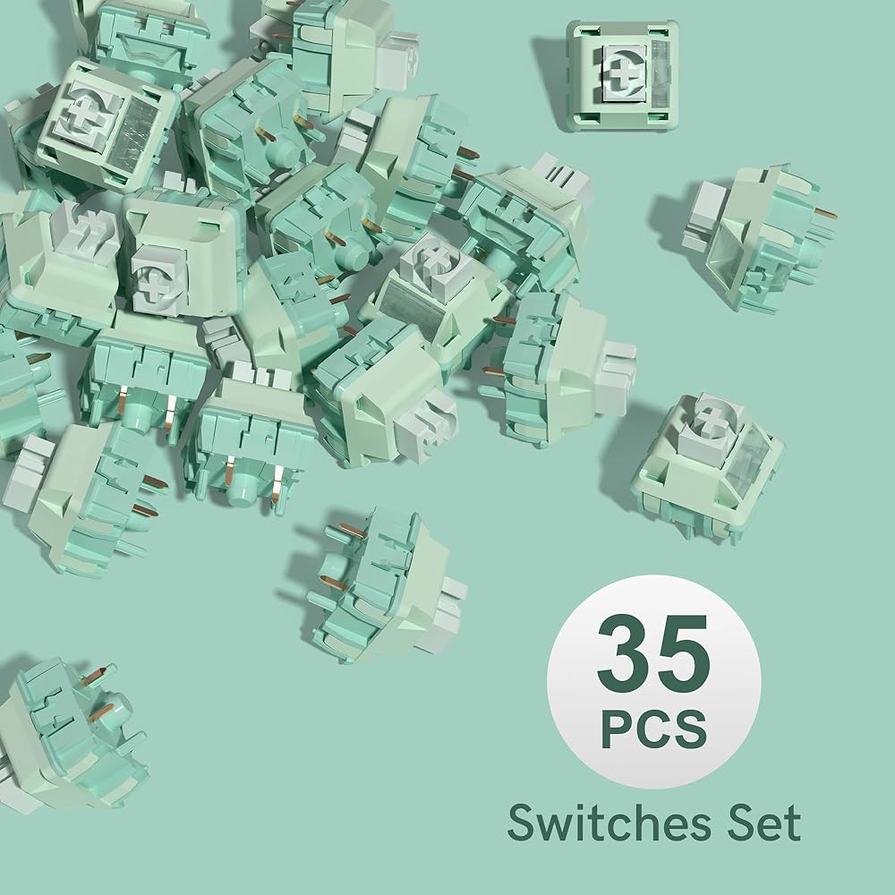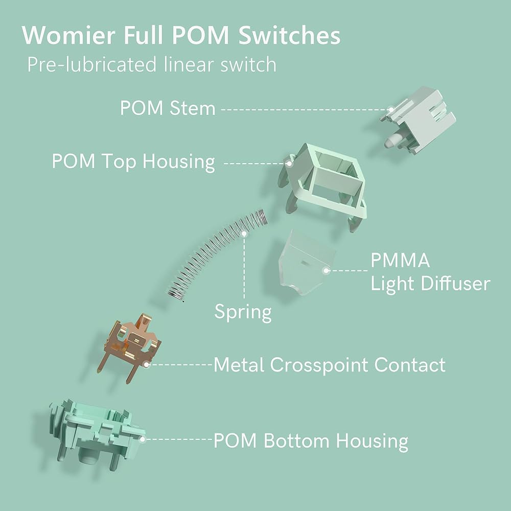 مفاتيح لوحة المفاتيح Womier 42gf Lubed Linear Switch، مواد مفاتيح POM كاملة، زنبرك طويل 22 مم، مفاتيح كريمية 5 دبابيس، متوافقة مع أغطية مفاتيح MX للوحة مفاتيح الألعاب DIY - 35 قطعة، أخضر