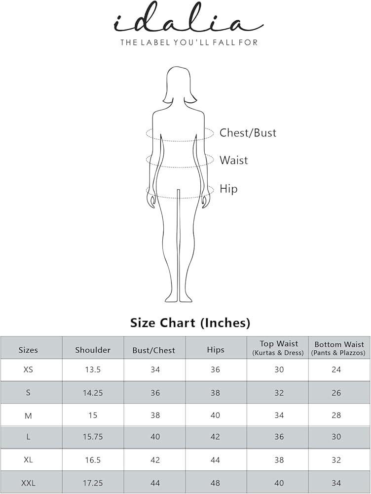 Shoulder Width (Inch) - S-14.25, M-15, L-15.75, XL-16.5, XXL-17.25, Bust (Inch) - S-36, M-38, L-40, XL-42, XXL-44, Waist (Inch) - S-32, M-34, L-36, XL-38, XXL-40
