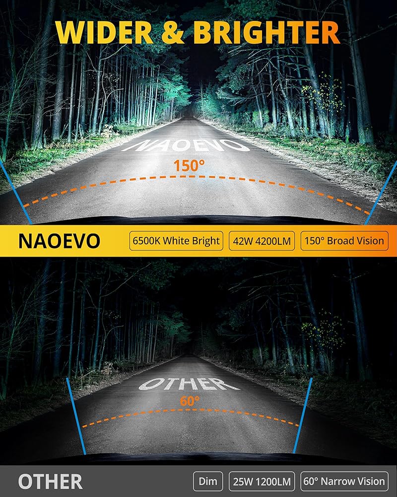 【شعاع عريض 150 درجة】يوفر الضوء الكاشف 150 درجة شعاعًا أوسع وأكثر تشتتًا لإضاءة المناطق الأكبر بشكل فعال، وهو مثالي للتخييم والأنشطة الخارجية. تعمل مصابيح LED للسيارة أيضًا على تحسين الرؤية عند القيادة في الضباب الكثيف أو المطر الغزير أو الثلج.