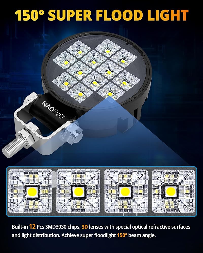 إضاءة ساطعة للغاية: تم تجهيز وحدات إضاءة LED مقاس 3 بوصات بـ 12 شريحة SMD3030 LED عالية الجودة، مما يوفر 4200 لومن من الضوء الأبيض الساطع 6500K لرؤية ما حولك بوضوح، مما يساعدك على القيادة بأمان وكفاءة.