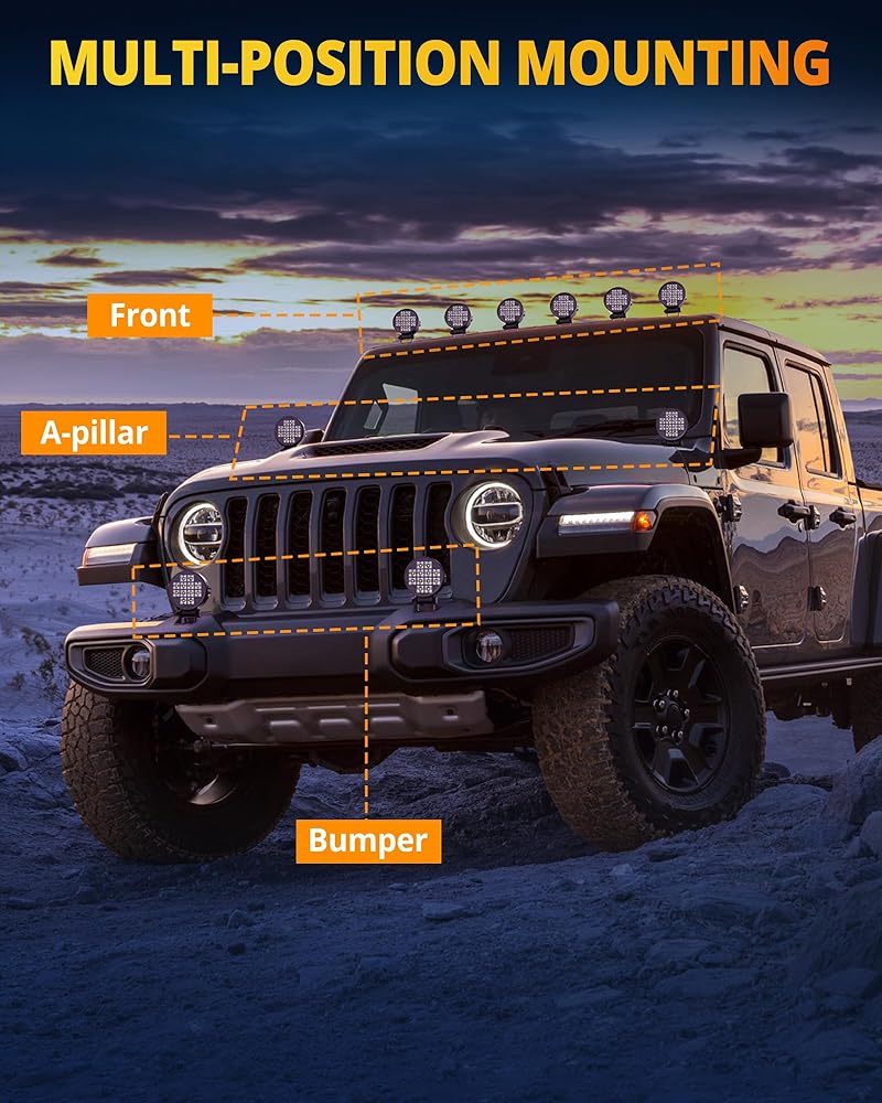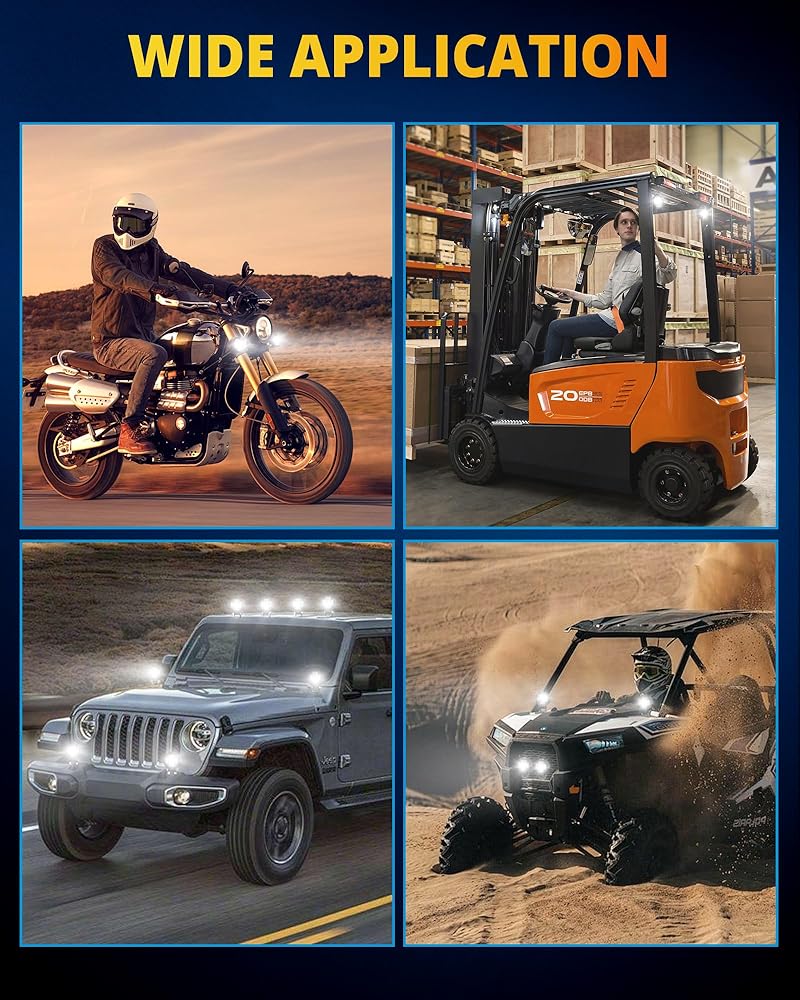 【استخدام واسع】مجموعة مصابيح LED تناسب 99% من المركبات مثل مصابيح الطرق الوعرة، وأضواء الجرار، وأضواء الضباب، وأضواء الشاحنات، وأضواء الجيب، وأضواء UTV، وأضواء ATV، وما إلى ذلك. يمكن تركيب قضبان إضاءة السيارات أينما تريد - على أعلى السيارة أو على المصد أو فوق الزجاج الأمامي. إنه الخيار الأفضل لإكسسوارات السيارات.