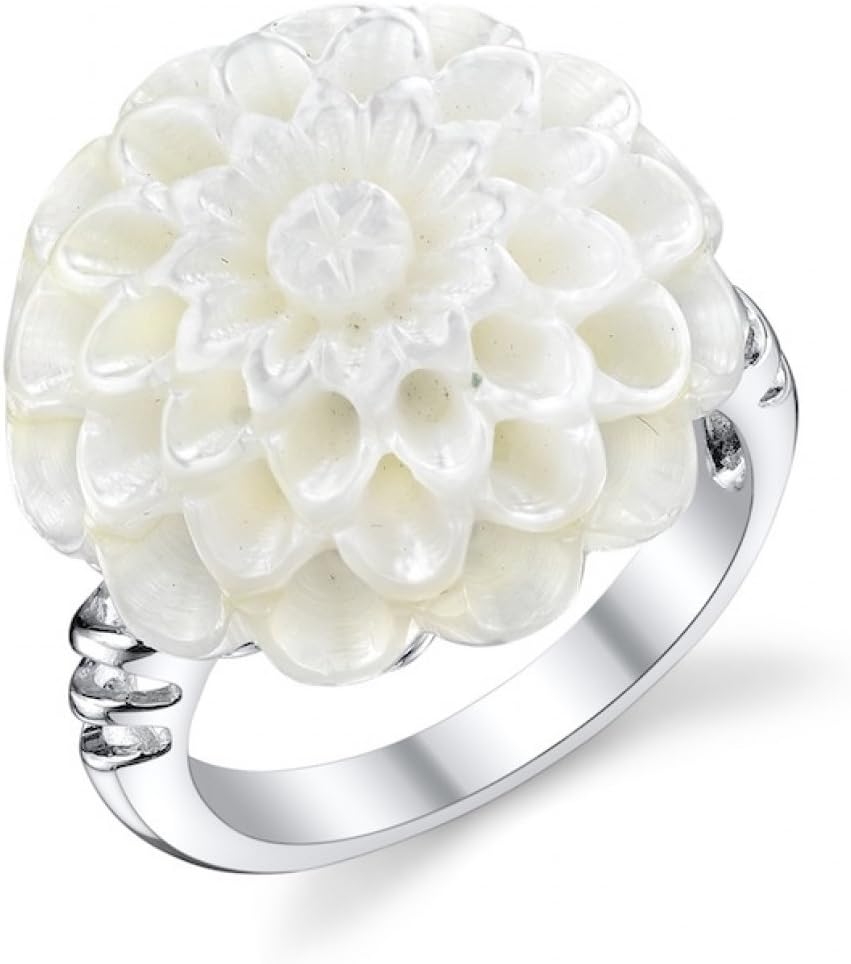 This beautiful pearl ring would be the perfect gift for any occasion. The ring features a AAA Quality White Mother of Pearl piece. The flower is mounted on a high quality sterling silver band. This item comes packaged in a beautiful jewelry box with an official genuine cultured pearl guarantee.