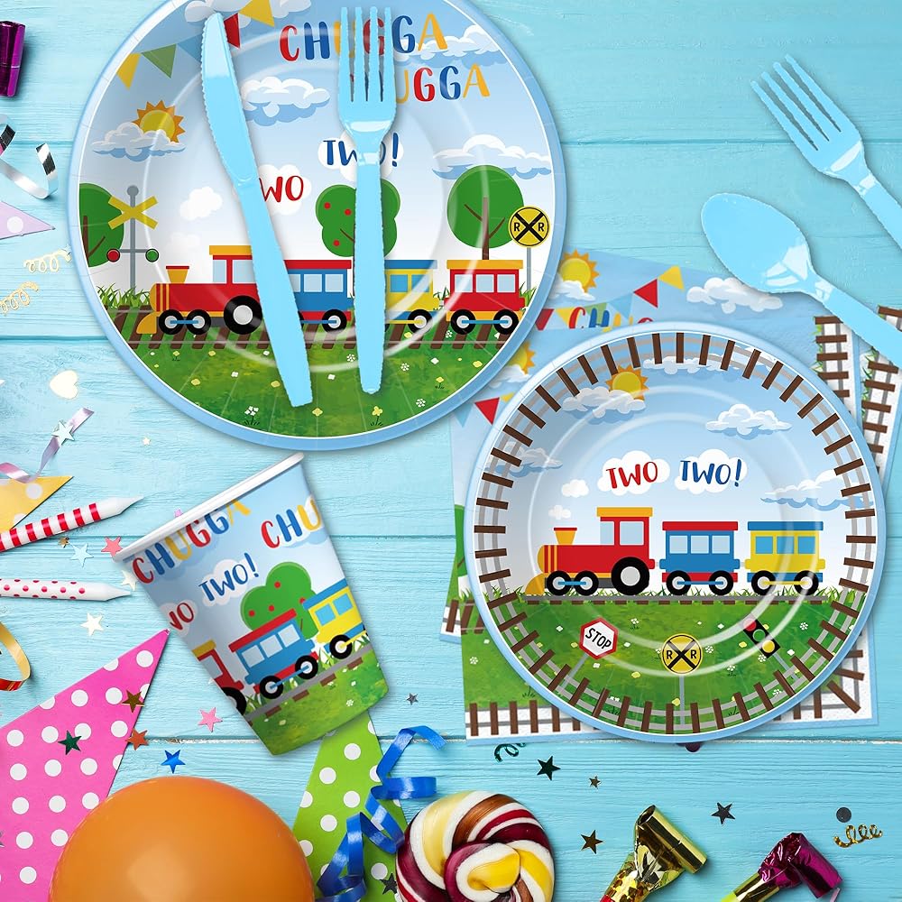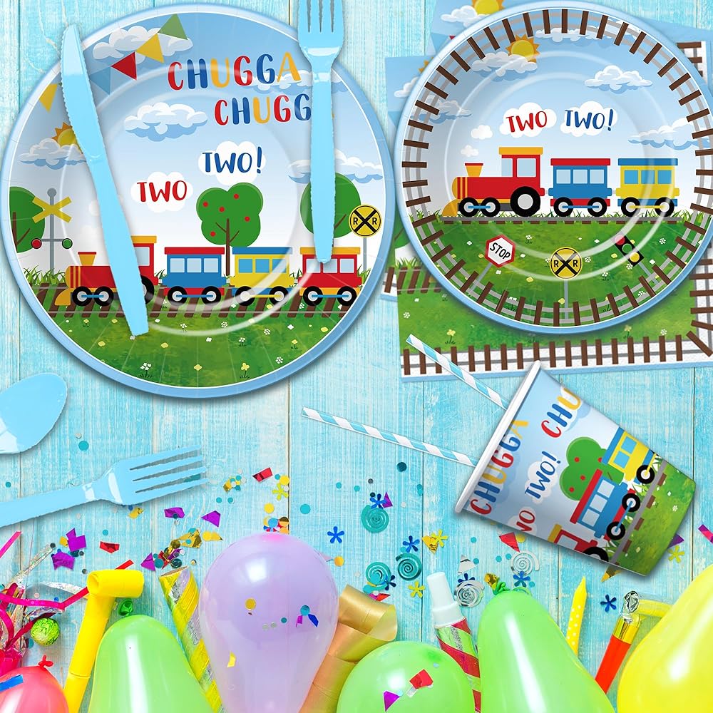 Train Theme 2nd Birthday Plates and Napkins Party Supplies Tableware Includes: