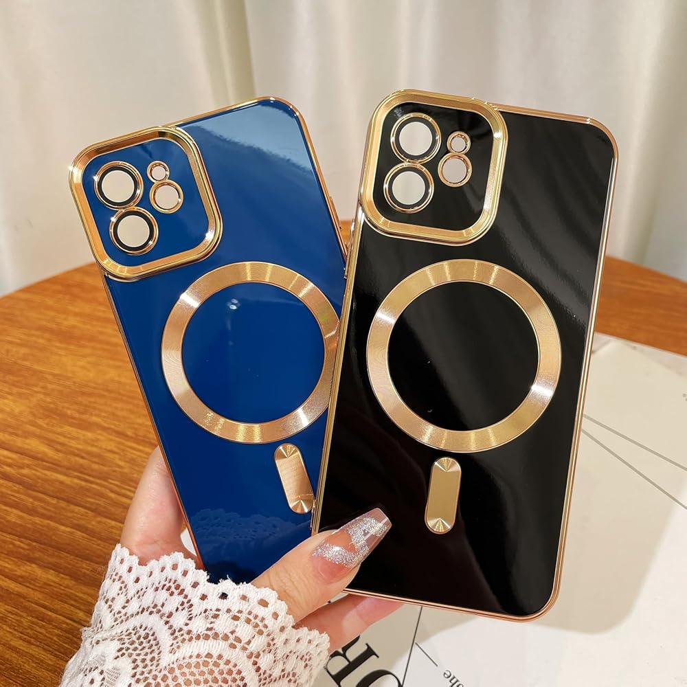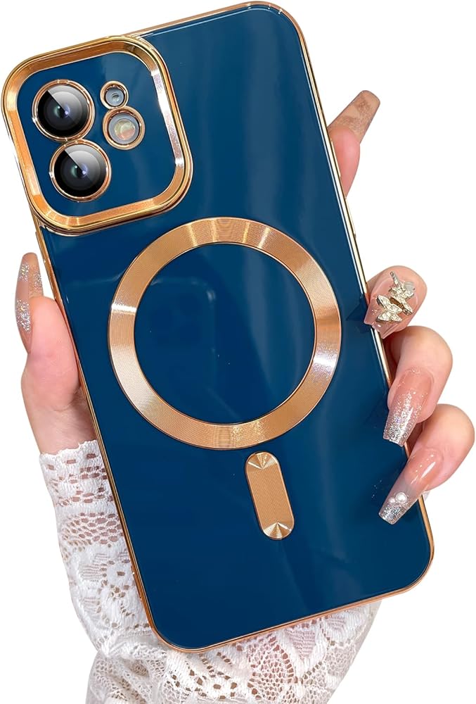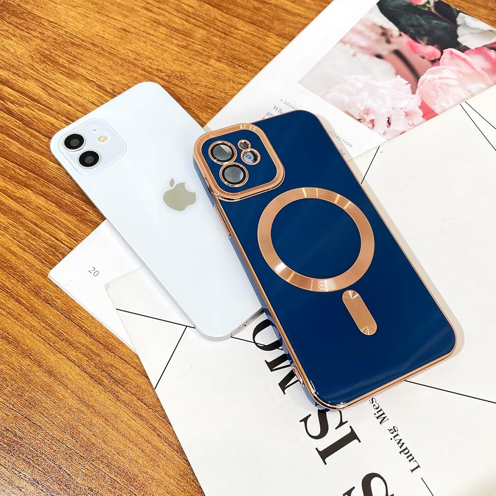حافظة OOK Magnatic لهاتف iPhone 11 [متوافقة مع MagSafe] حافظة كاملة لعدسة الكاميرا بحافة مطلية بالكهرباء الذهبية حافظة هاتف واقية مقاومة للصدمات من مادة TPU للنساء والرجال 6.1 بوصة - أزرق