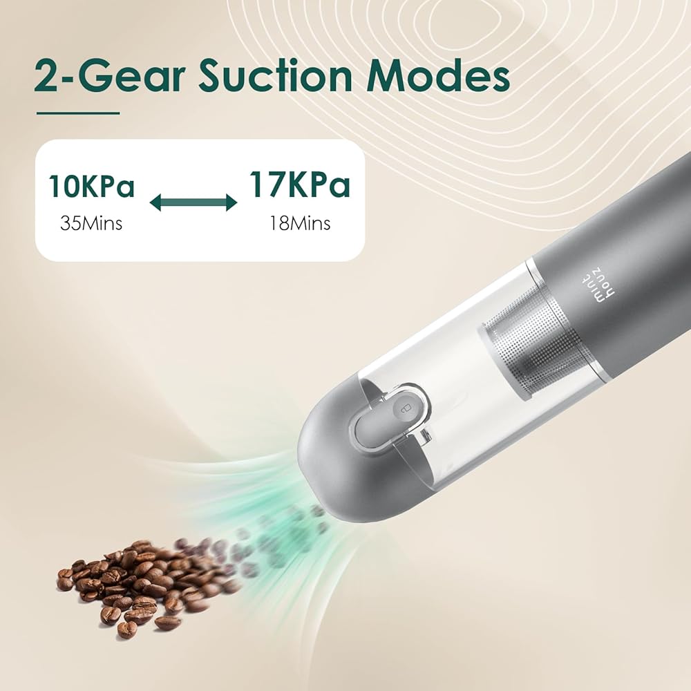 【بطارية تدوم طويلاً】مكنسة السيارة المحمولة القابلة لإعادة الشحن مع بطارية ليثيوم مدمجة بقوة 7500 مللي أمبير في الساعة، ويمكن شحن مكنسة السيارة اللاسلكية هذه بالكامل خلال 4 ساعات. تعديل الشفط ثنائي التروس، يمكن استخدام السرعة المنخفضة لمدة 35 دقيقة، ويمكن استخدام السرعة العالية لمدة 18 دقيقة.