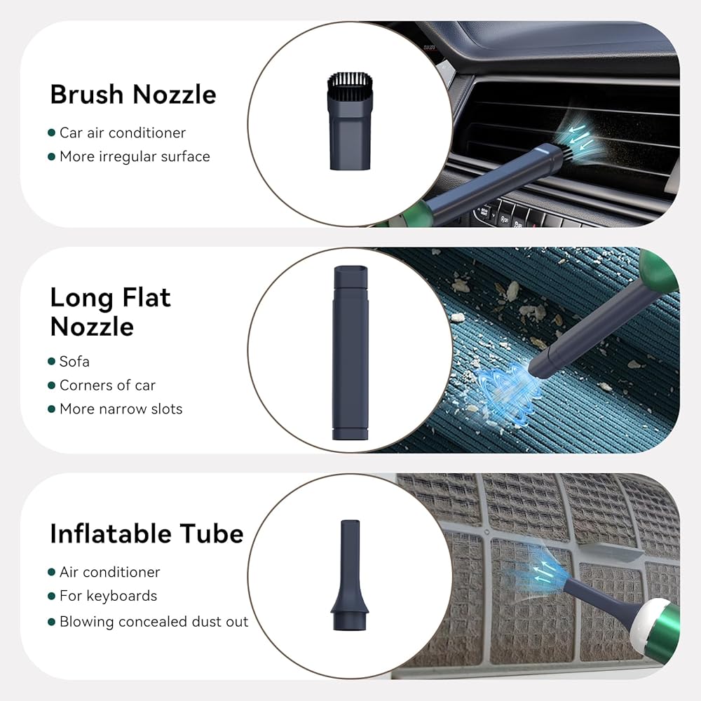 【وظيفة نفخ الهواء】 تتميز المكنسة الكهربائية المحمولة للسيارة بقوة 120 وات بوظيفة نفخ الهواء القوية التي تساعدك على تنظيف الأسطح الحساسة بسهولة.