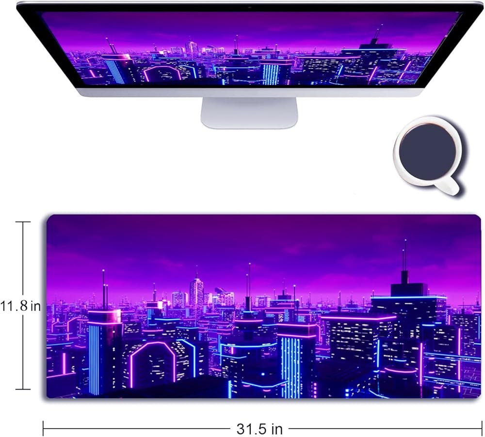 لوحة ماوس ألعاب Manicer، لوحة مكتب كبيرة ممتدة Blacklight Metaverse City ثلاثية الأبعاد، لوحة مفاتيح كمبيوتر طويلة تفاعلية للأشعة فوق البنفسجية مع قاعدة مطاطية غير قابلة للانزلاق 3 مم للمكتب والمنزل - 31.5 بوصة × 11.9 بوصة
