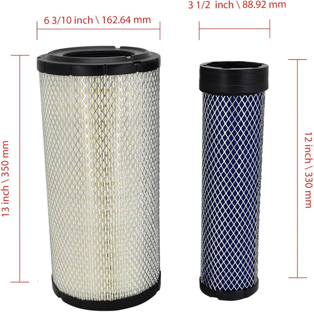 مجموعة فلاتر الهواء P829333 متوافقة مع جرار جون ديري 3100، 3200، 3210، 3300، 3400، 5076E، 5082E، 5090E، 5090EH، 5093E، 5101E، 5101EN، 5103، 5203، 5210، 5215، 5220، 5225، 5303، 5310، 5310N ، 5315، 5320، 5320N، 5325، 5325N، 5403، 5410 متوافق مع جرار كوبوتا M105X، M108S، M108X، M8200، M8540، M9000، M9540 محمل SVL90 SVL90-2 متوافق مع فورد جرار 5610S، HW30 5، LB75B، LB90، LB90B، LB110B، 7610S، 7635، 8010، CR920، CR940، CR960، TT55، TT65، TT75، 3010S