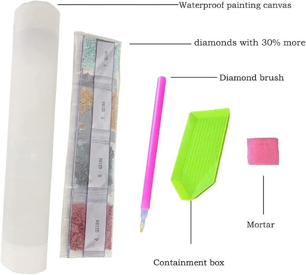 diamond art kits for adults production steps. 1. Open the painting box, check the painting tools matching. 2. Check the diamond color and number sorting number to facilitate the production. 3. Apply the appropriate adhesive using the product painting pen and paste it on the corresponding number. 47. Note: The product does not include the frame