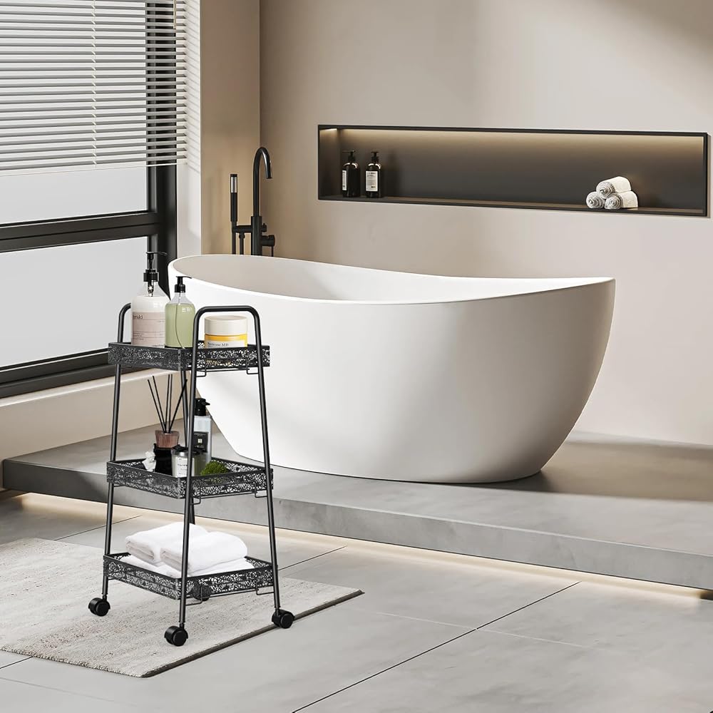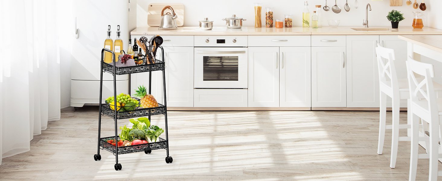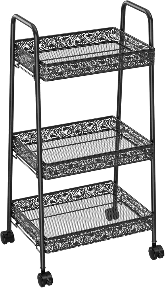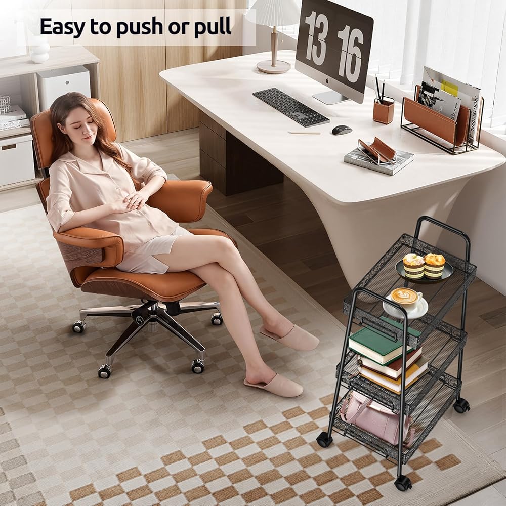 مساحة تخزين واسعة: تتميز هذه العربة الدوارة بثلاثة طبقات من الأرفف، مما يوفر مساحة تخزين واسعة لمختلف العناصر في حمامك أو مطبخك أو جراجك أو مكتبك. الطبقة العلوية مثالية لتخزين المناشف أو مستحضرات التجميل أو غيرها من أشتات الشمس، بينما يمكن للطبقتين الوسطى والسفلية حمل أشياء أكبر مثل مستلزمات التنظيف أو الكتب أو أدوات المطبخ.
