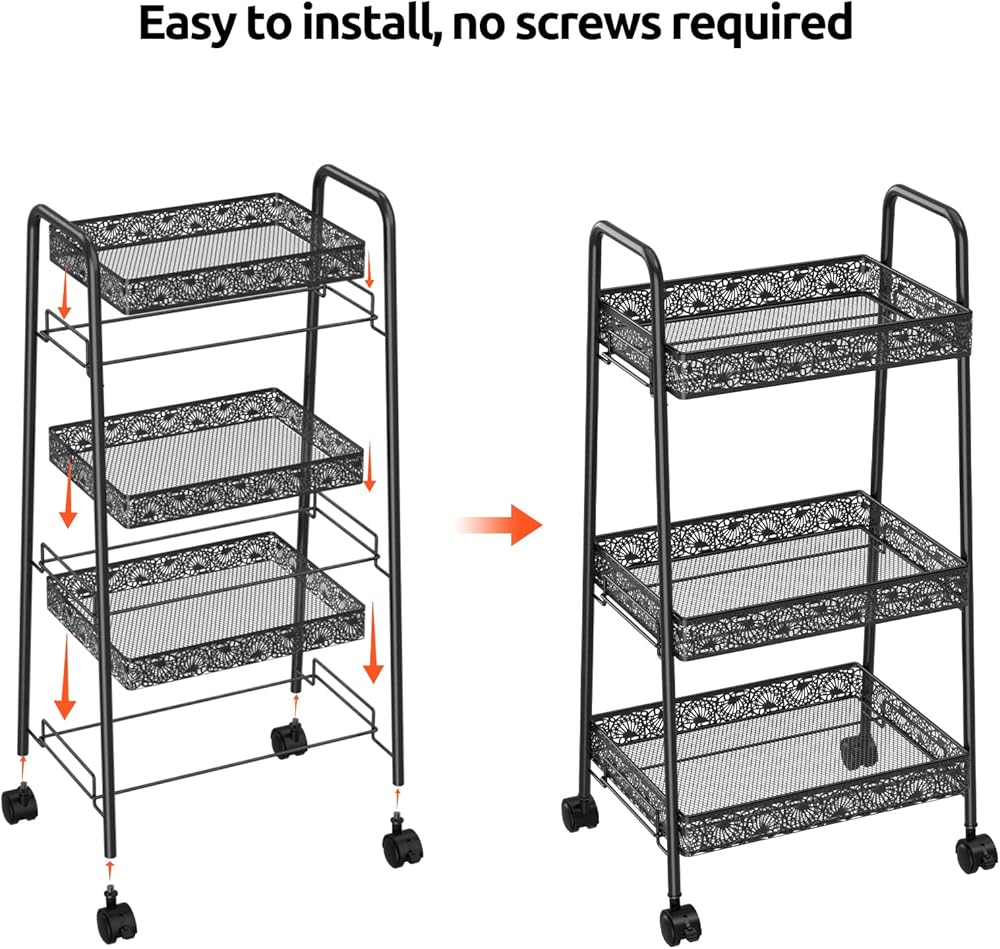 سهلة التجميع: العربة سهلة التجميع، ولا تحتاج إلى أدوات أو تعليمات معقدة. ما عليك سوى ربط الأرفف بالإطار وتثبيتها بالمسامير المتوفرة. يمكن تركيب العجلات بسهولة أيضًا.
