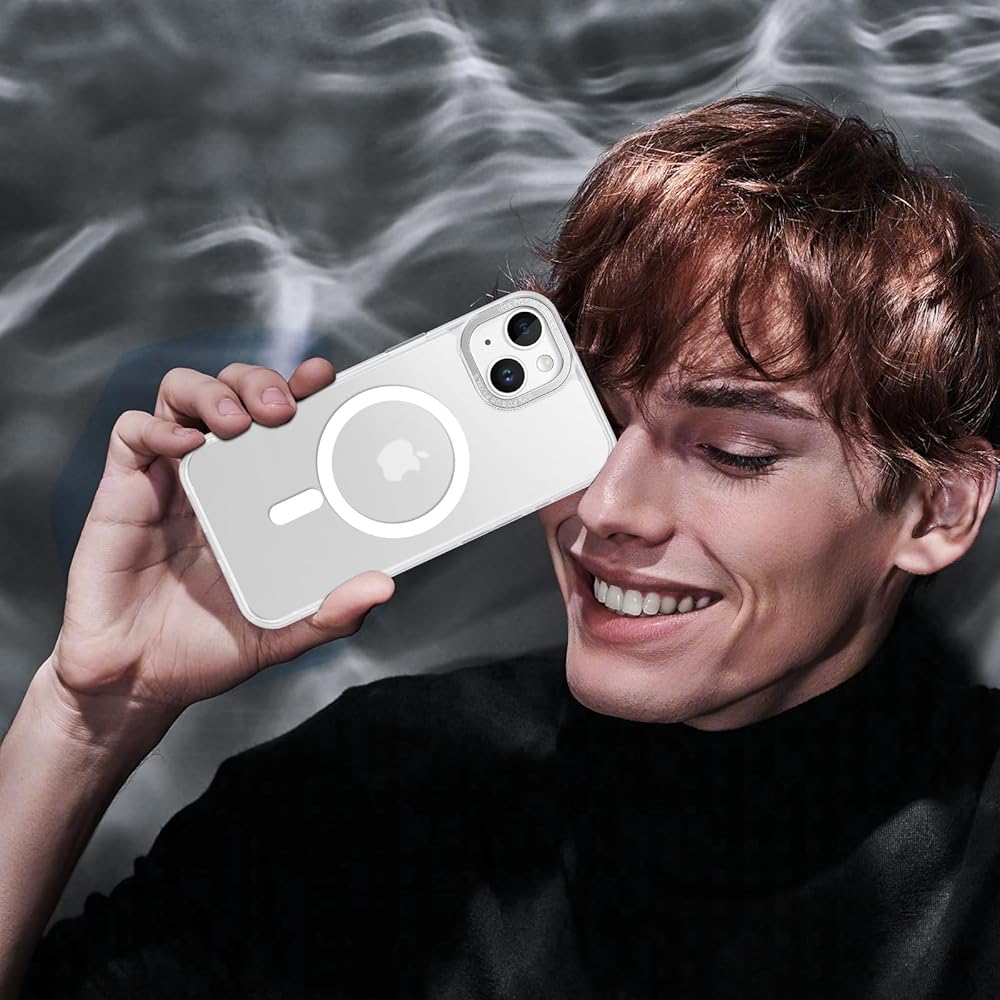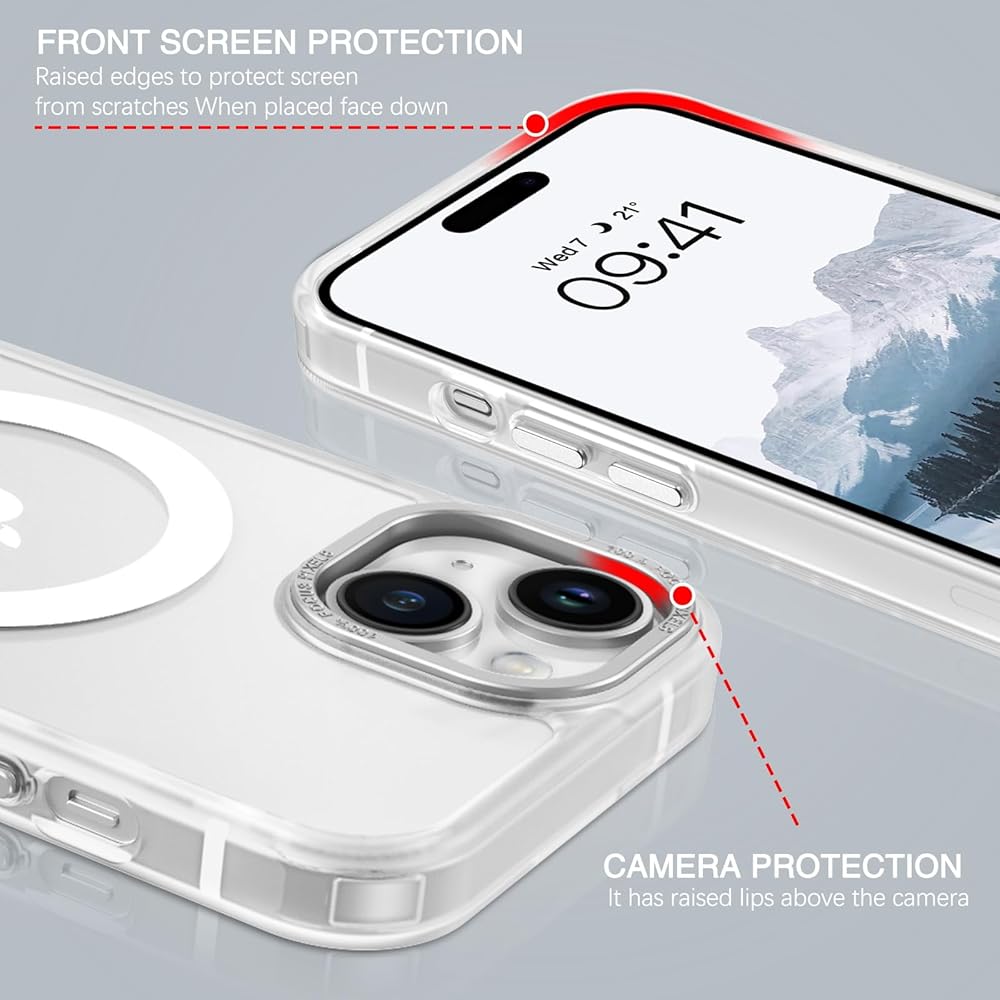 ★【نحيف وسلس】يتناسب غطاء هاتف iphone 15 magsafe بشكل مريح مع مادة البولي كربونات الممتازة ومادة TPU وحرفية ممتازة، هذا الجراب ذو التصميم النحيف وخفيف الوزن متين بما يكفي لحماية هاتف iphone 15 الجديد الخاص بك من الصدمات والخدوش والسقوط العرضي.