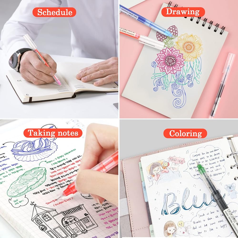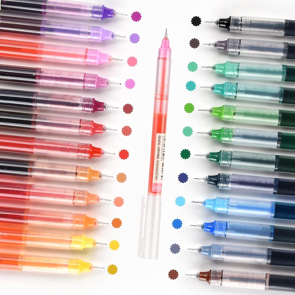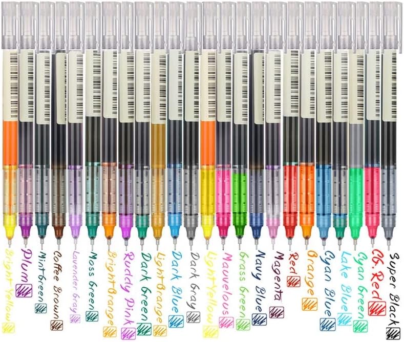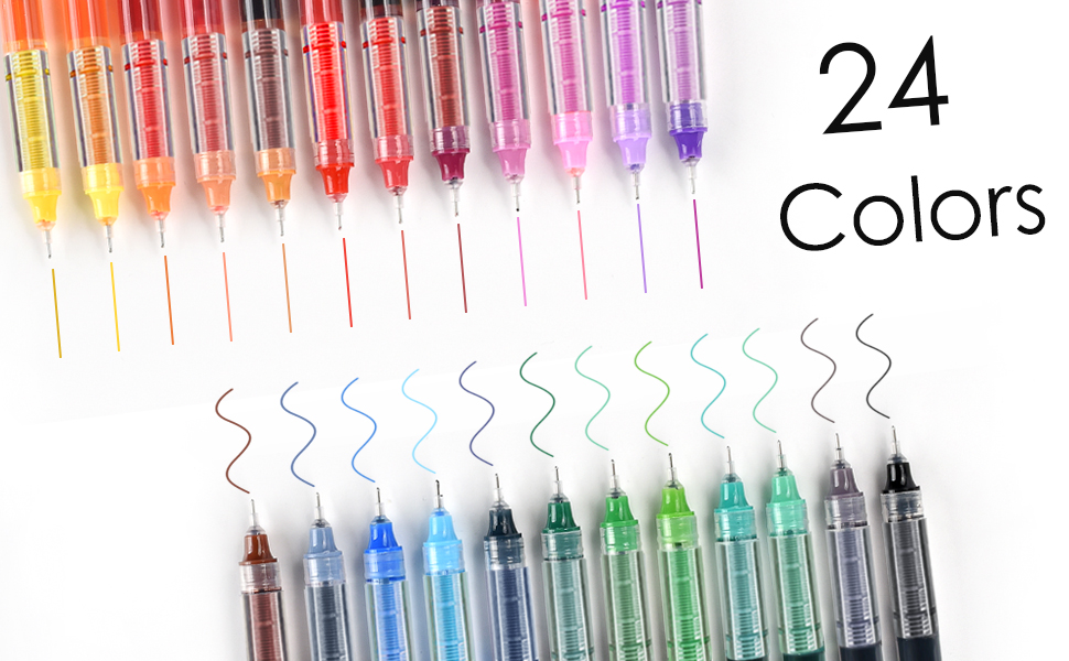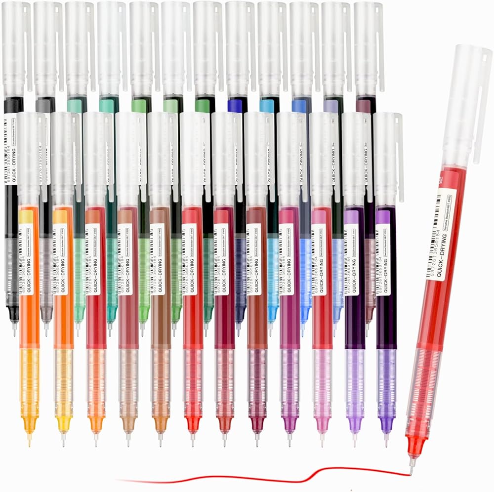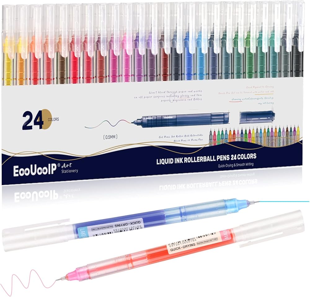أقلام حبر سائلة من EooUooIP، أقلام كرة دوارة ملونة، أقلام حبر جل، 24 قطعة قلم رفيع متعدد الألوان لكتابة اليوميات وتدوين الملاحظات العبث والمدرسة والمكتب والمنزل