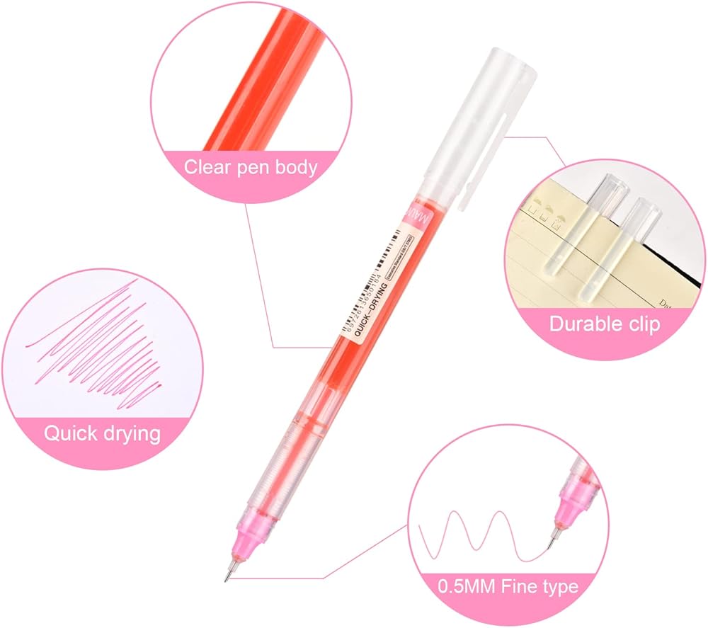 - كتابة سلسة: يوفر التصميم السائل المستقيم مقاس 0.5 مم إخراج حبر سلسًا ومتساويًا ووقت تجفيف سريع.