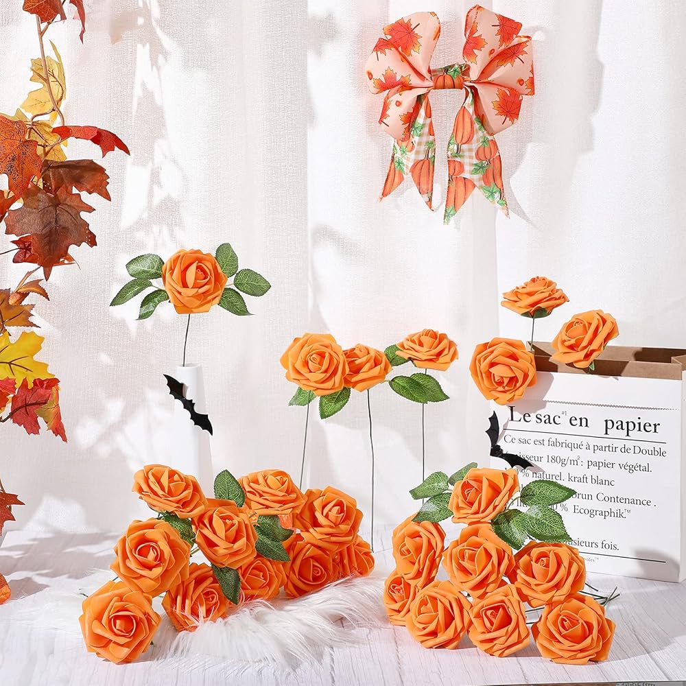 The fake rose flowers have flexible thin stem, which makes the roses very easy to work with. It's easy to bent, cut down or pull out them as you need. They are ideal addition for making bouquets, centerpieces, flower balls, cake flowers or any other flower decorations, centerpieces and arrangements that you want at your wedding, party, baby shower or home.