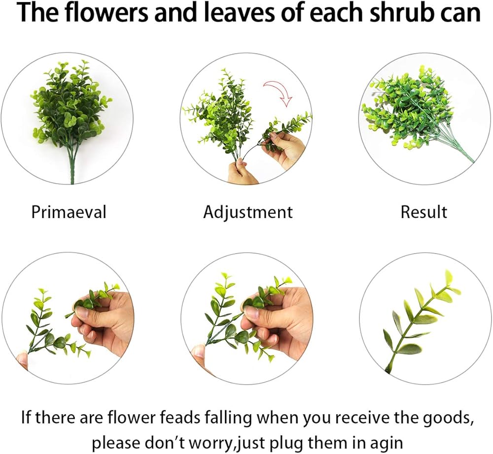 • 【UV Resistant】: Plastic shrubs plants are UV resistant. Natural fresh color, ECO-Friendly, well made and vibrantly colored. can be put outside, front porch, back deck, garden, veranda, balcony.