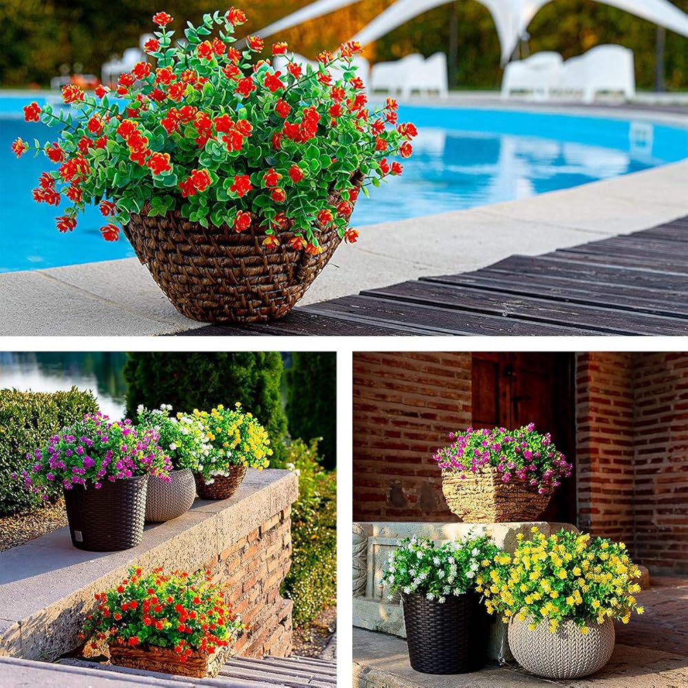 🌼Plastic flowers for outdoors are UV resistant,Perfect for wedding, stages, parks, patio yard, balcony, backyard, Christmas and other indoor outside decoration, add the rural and romantic atmosphere for you.