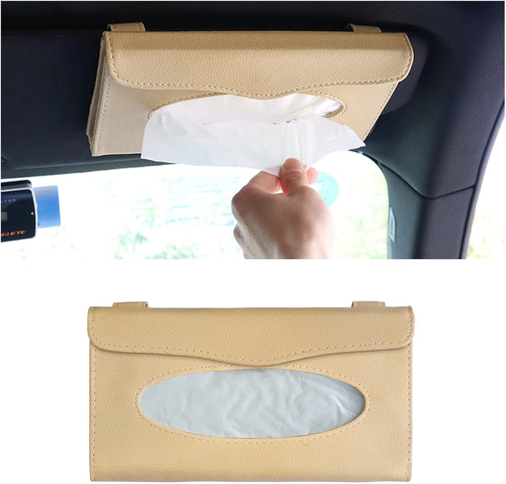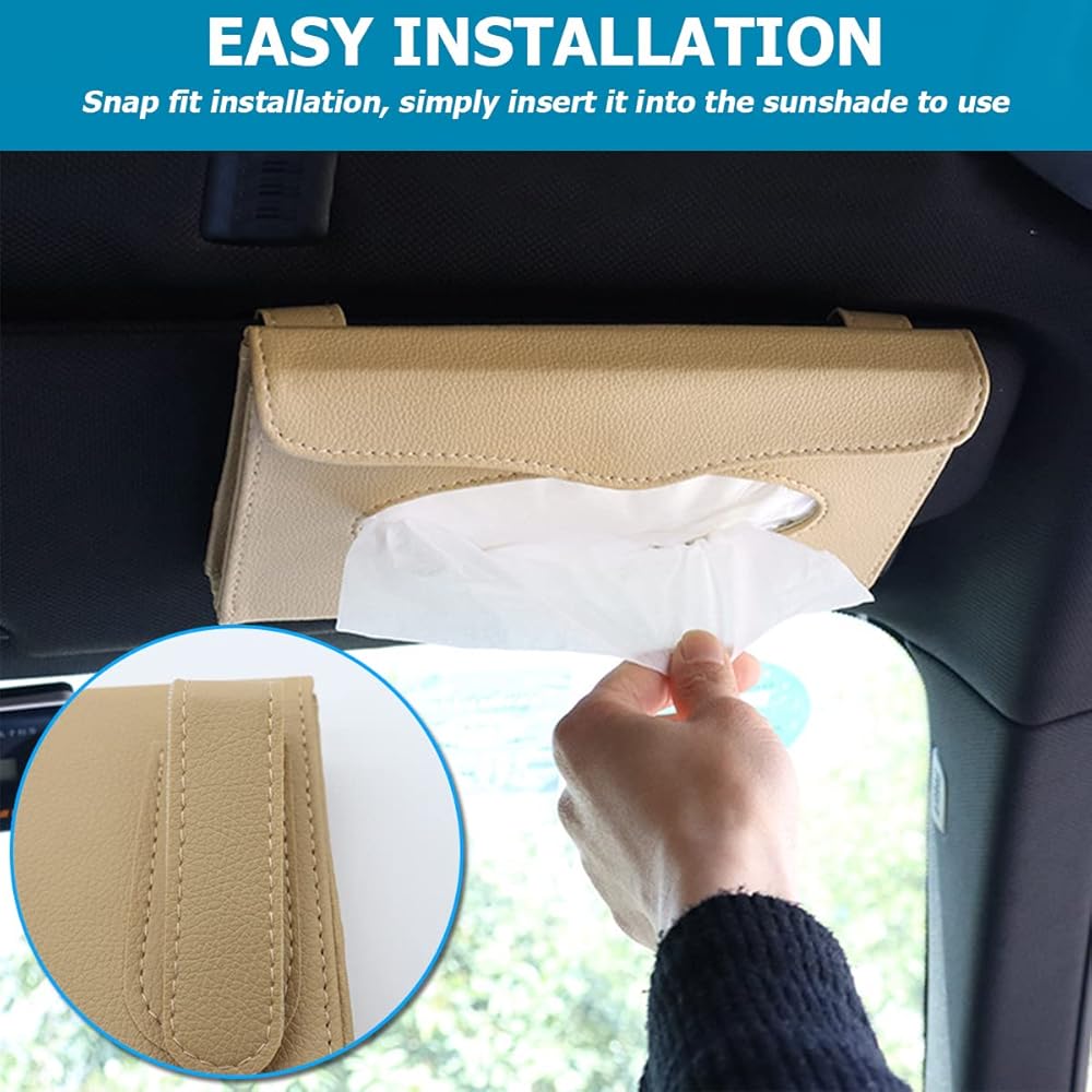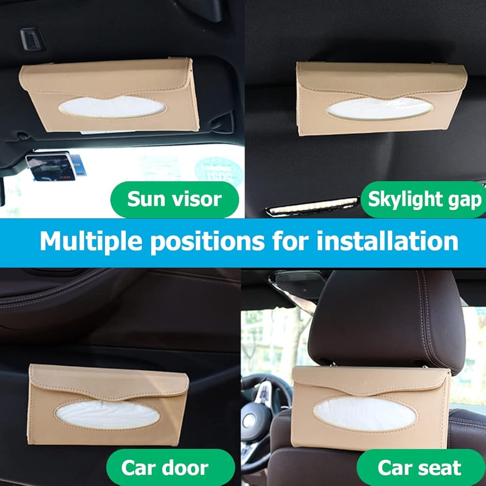 【Easy Install】: Just clip the two clips with leather on the back to the installation position, you can install it on the sun visor, front armrest, front headrest, front seat, so you can reach out and get the tissue, safe and convenient.