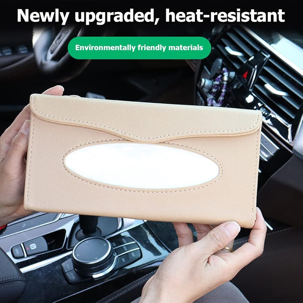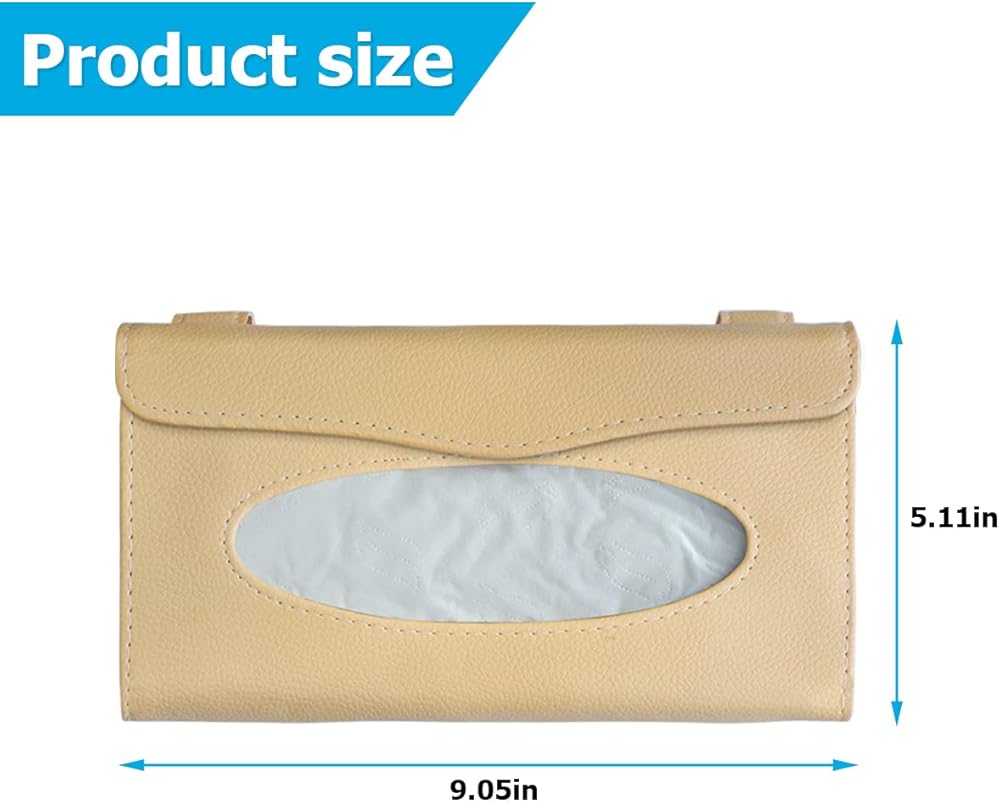 【High-quality Materials】: This car tissue box is made of high-grade PU leather on the outside, with exquisite stitching, flawless wireless head, odorless and easy to clean. The sun and heat resistant leather can be used for a long time with a smooth surface that will not leave scratches on the sun visor.