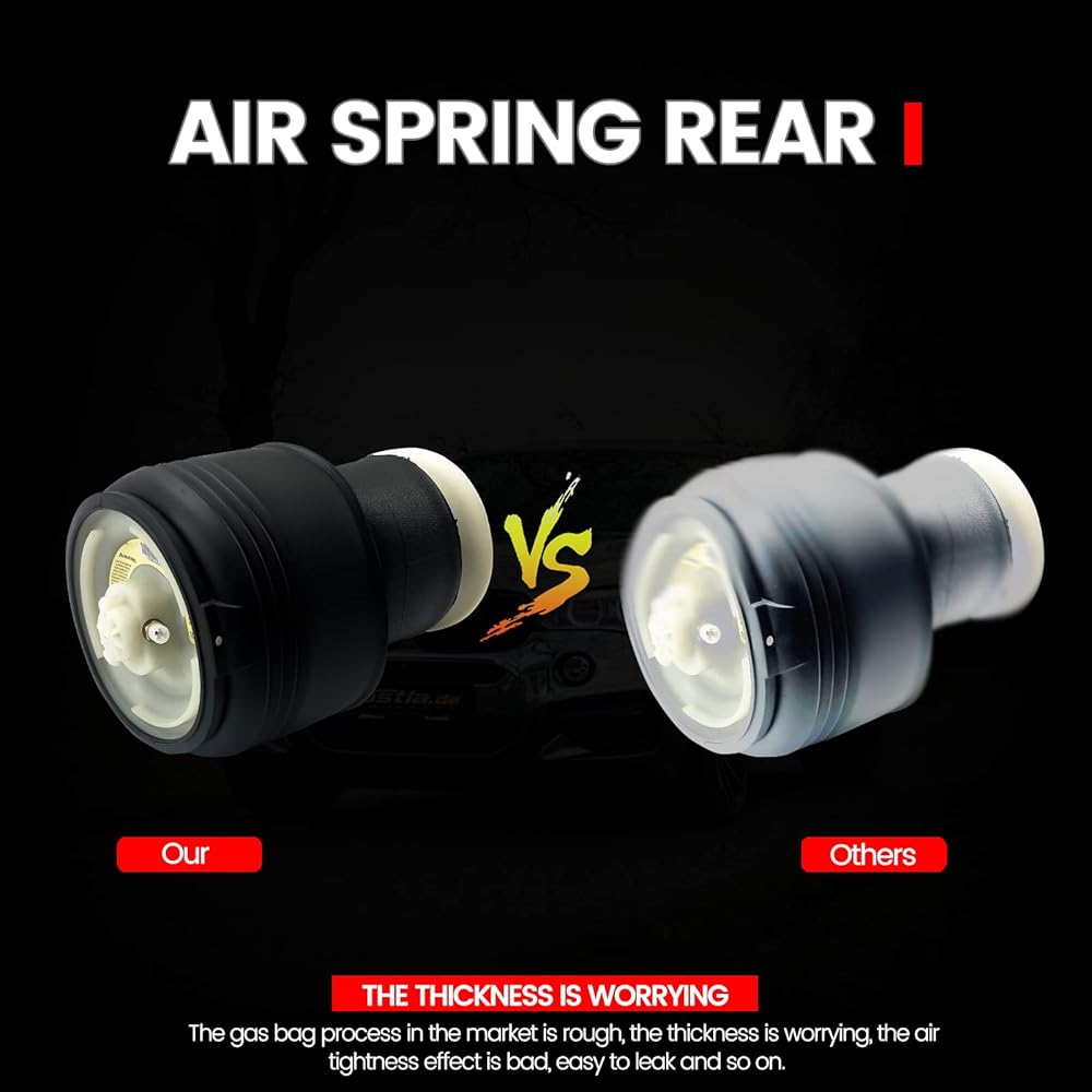 【جودة ممتازة】الرحلة الهوائية مصنوعة من مطاط مستورد عالي الكثافة، وأكثر متانة وأداء تحميل أفضل من تعليق الهواء العادي، مما يوفر لك تجربة قيادة أفضل بعد الاستبدال.
