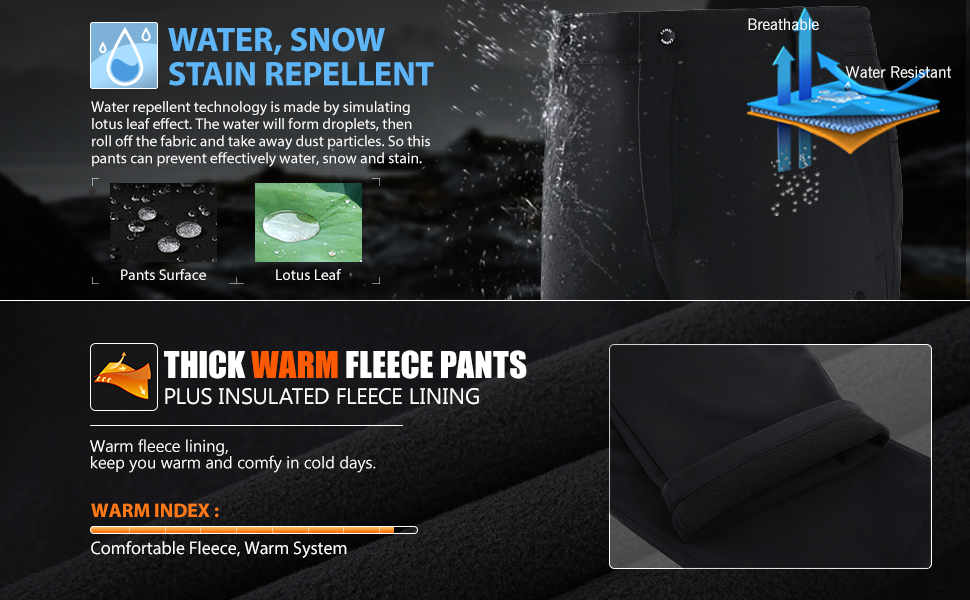 • حافظ على الدفء: تأتي السراويل النسائية مع بطانة صوفية سميكة عازلة وسطح مقاوم للثلوج والرياح، والذي يمكنه قفل درجة حرارة الجسم بسرعة ويوفر لك أقصى قدر من الراحة أثناء الأنشطة الخارجية.