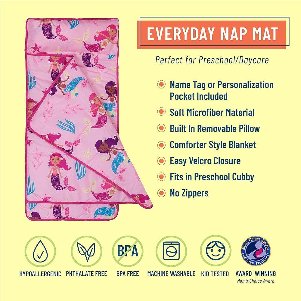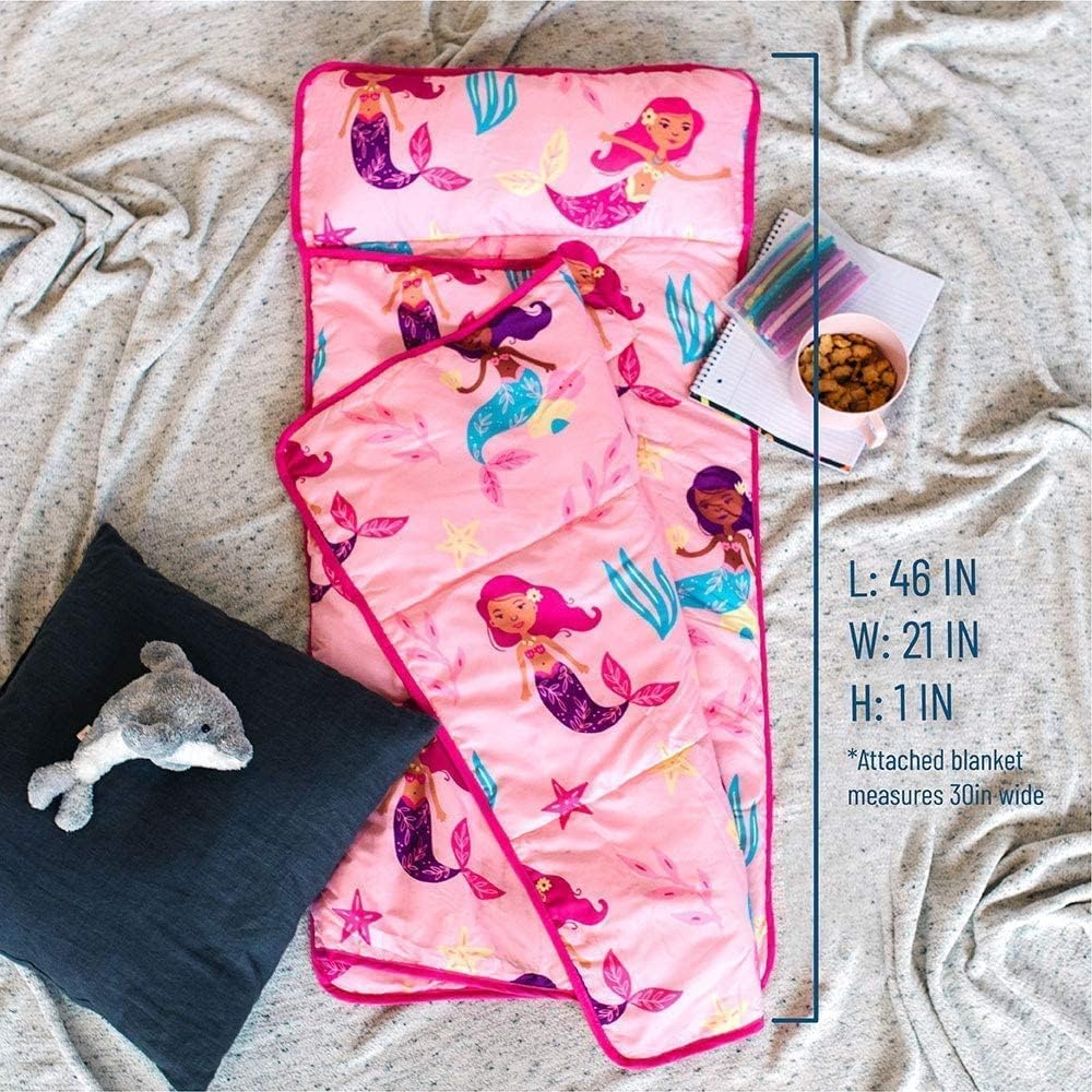Wildkin's Day2Day Nap Mat is made from a super soft blend of microfiber and polyester materials. The attached blanket is oh-so-cozy and keeps your little one extra warm in the sleeping mat. Whether they're cuddled up on their cot for a daycare snooze or hunkered down in the living room for a blanket-fort campout.