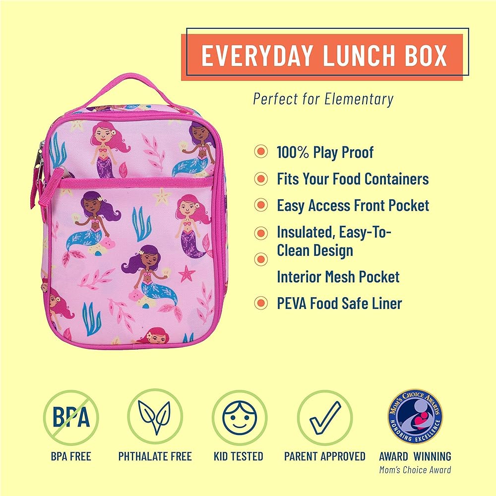 We've designed our Wildkin lunch box for kids to withstand even the toughest, homework-filled school days. Made from super durable 600-denier polyester fabric with an interior nylon lining, the Day2Day Lunch Bag Box is capable of handling anything you throw at it – both inside and out. If things get a little too messy just spot clean as needed and leave open until completely dry. While