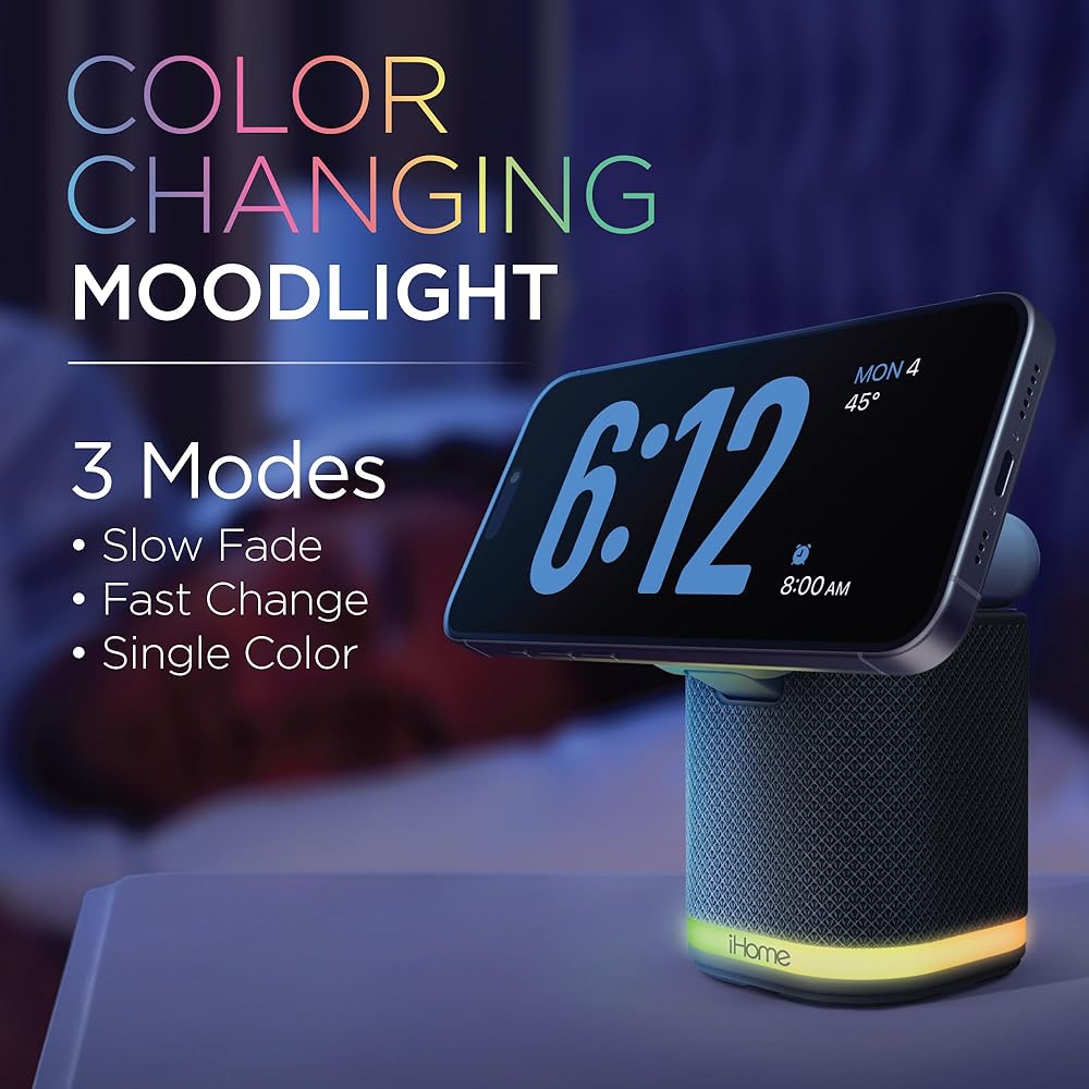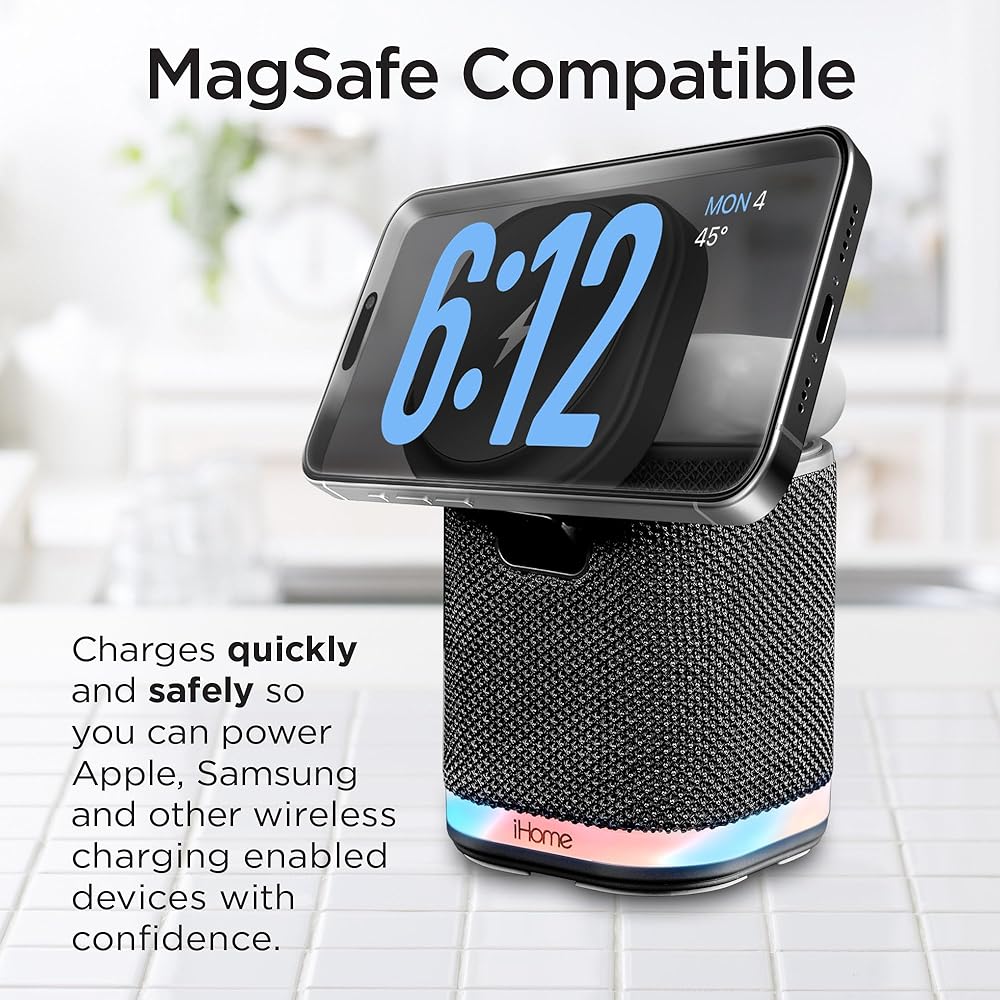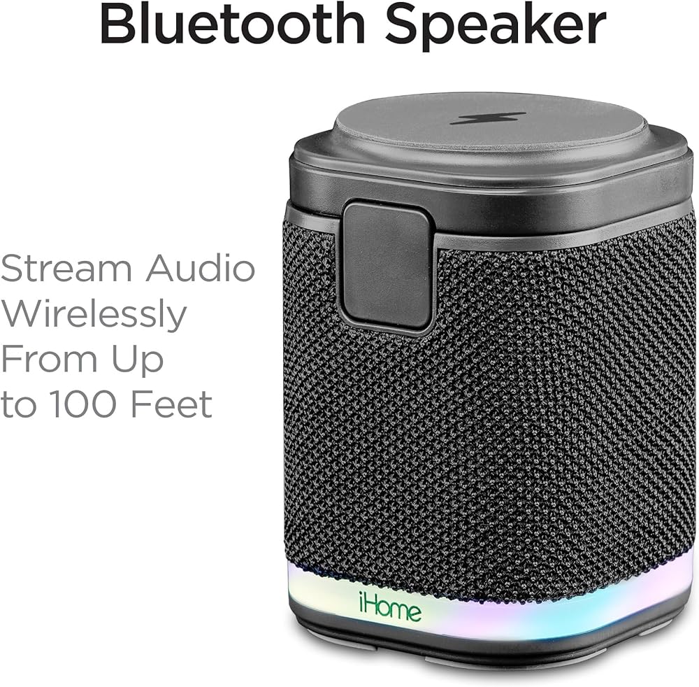 مكبر صوت بلوتوث آي هوم مع شاحن لاسلكي، قاعدة شحن مع ضوء ليلي متغير اللون - رمادي داكن (iPBT50DG)