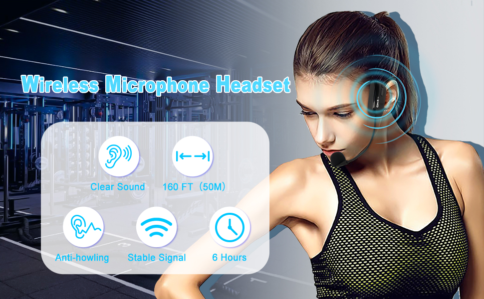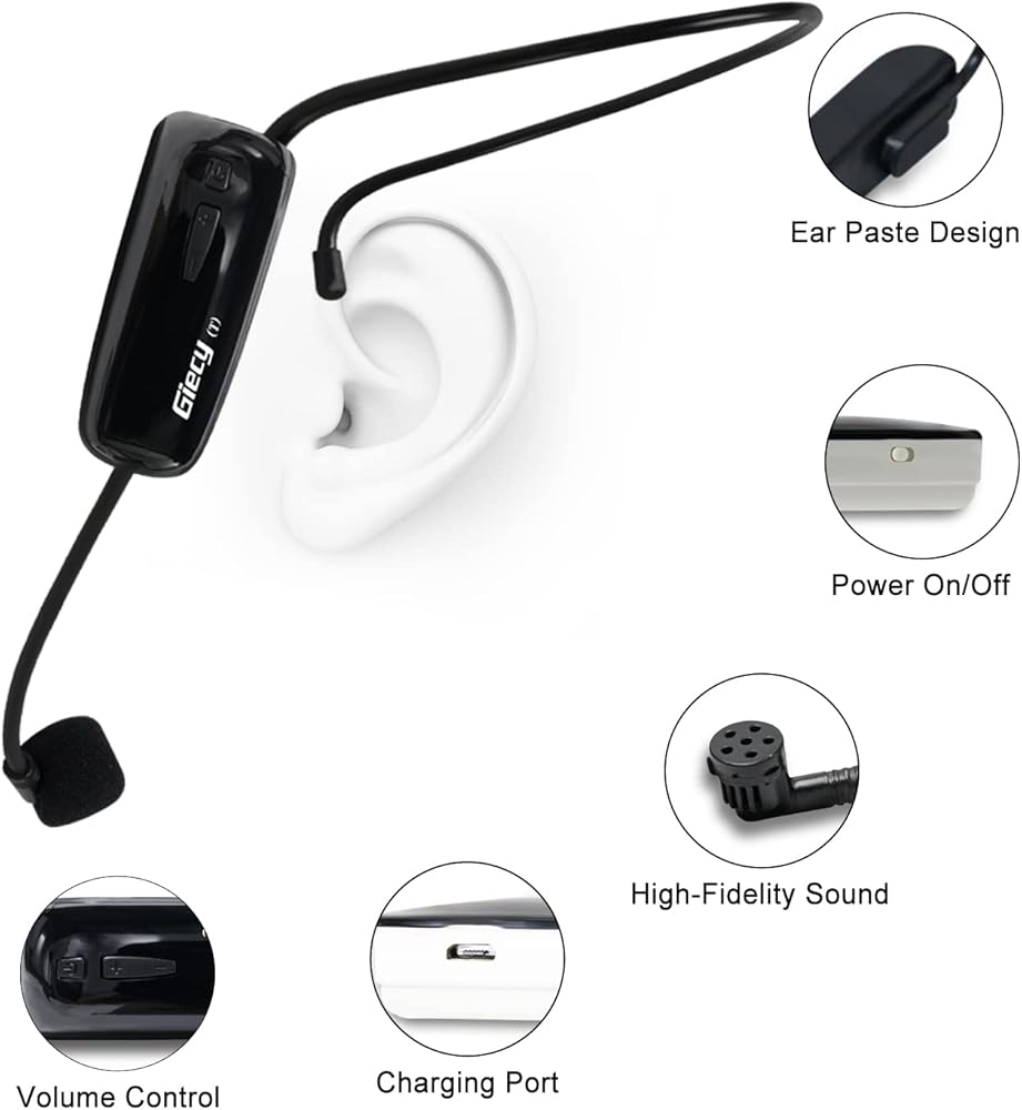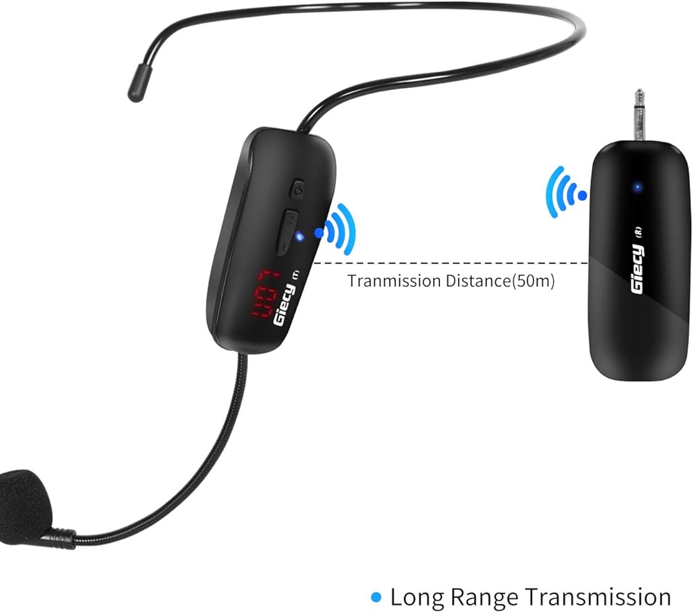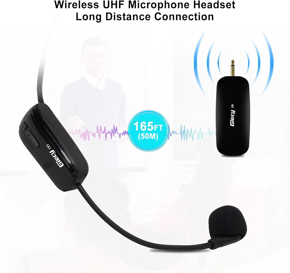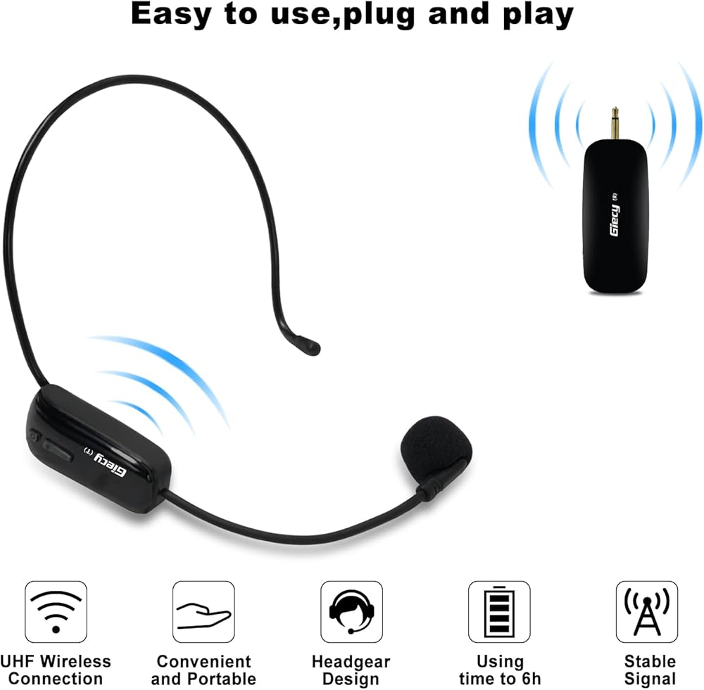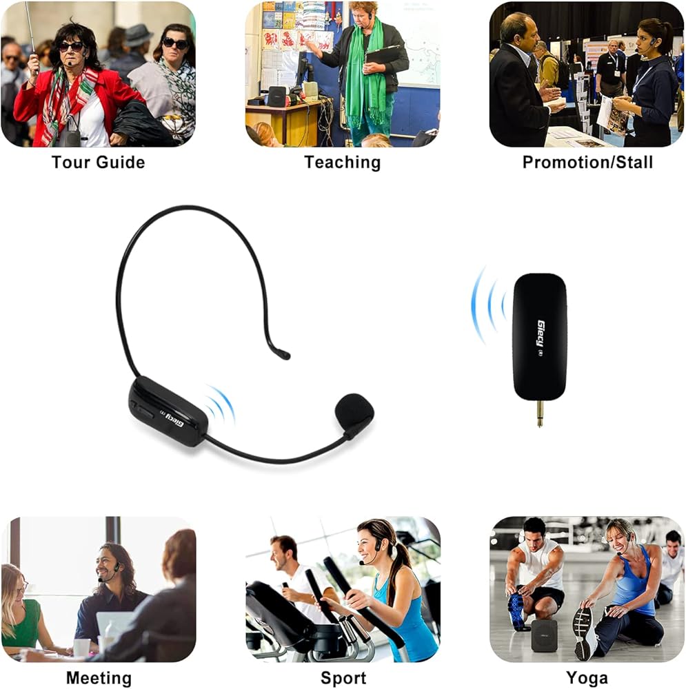 ميكروفون لاسلكي UHF سماعة رأس لاسلكية نظام ميكروفون ميكروفون قابل لإعادة الشحن وجهاز استقبال لاسلكي لمضخم الصوت ونظام PA والمعلم والمرشدين السياحيين والمدربين
