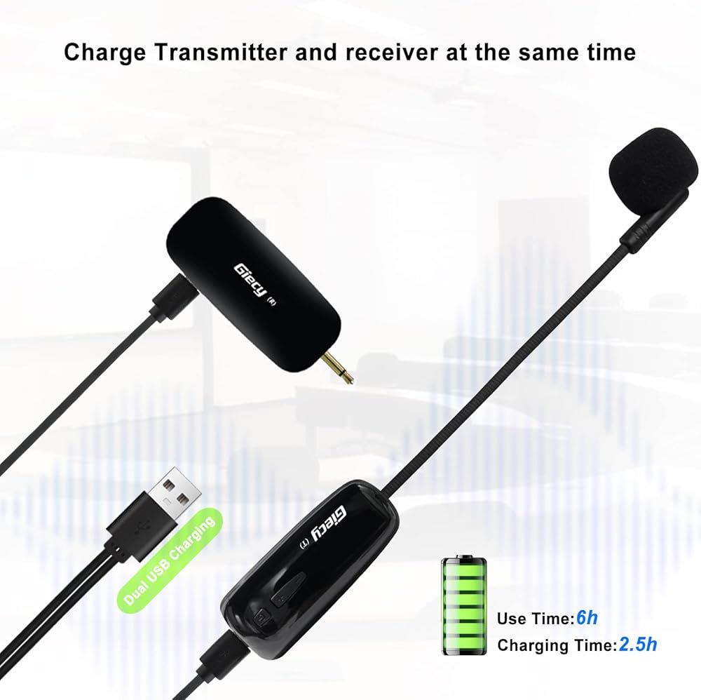 【متانة البطارية】: يحتوي جهاز الإرسال والاستقبال على بطاريات ليثيوم أيون مدمجة قابلة لإعادة الشحن بقدرة 400 مللي أمبير في الساعة، والتي يمكن أن توفر حوالي 6 ساعات من وقت العمل، ووقت الشحن 2.5 ساعة.